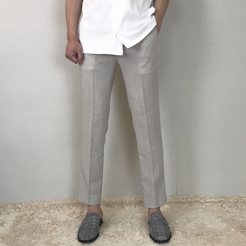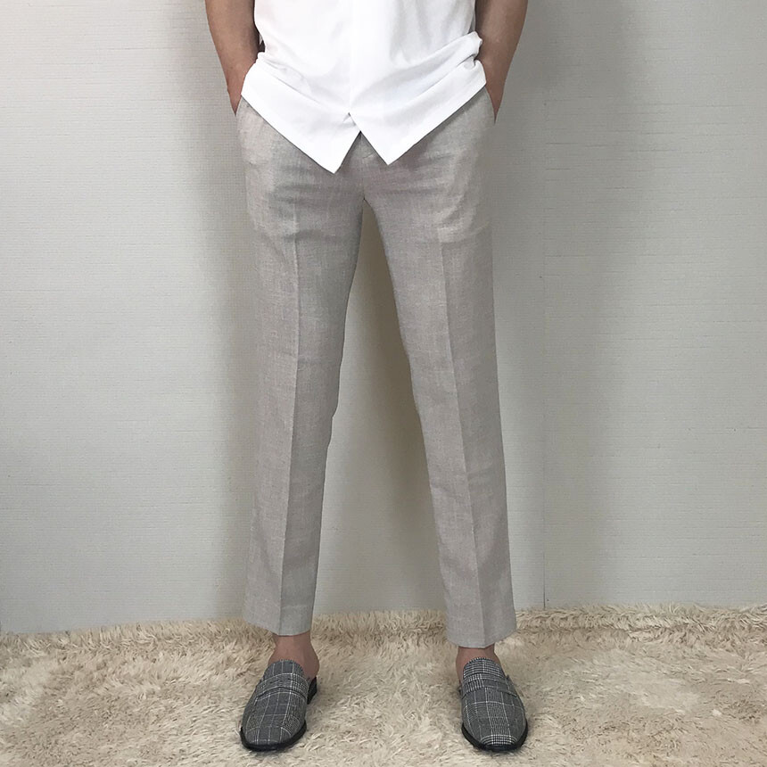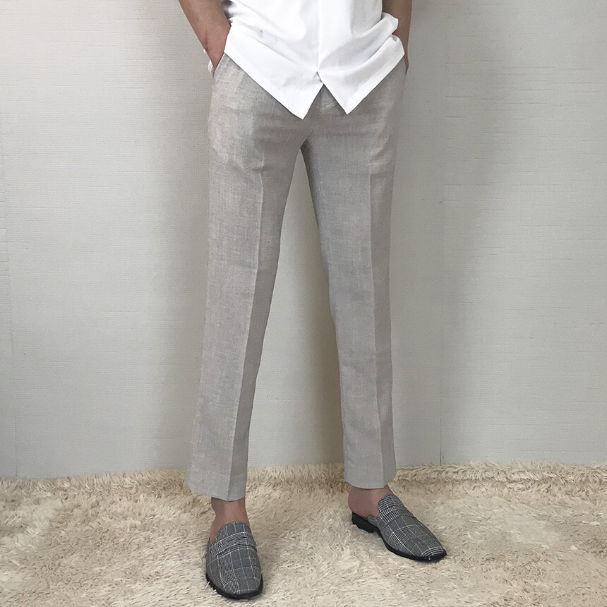 크림베이지 린넨 아이스 9부 슬랙스