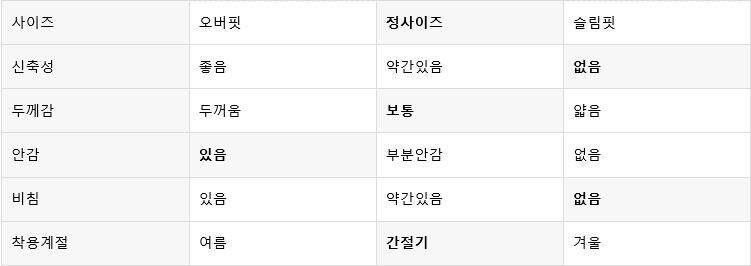 평소 입던 스타일과 달라 만족도가 낮을 수 있습니다