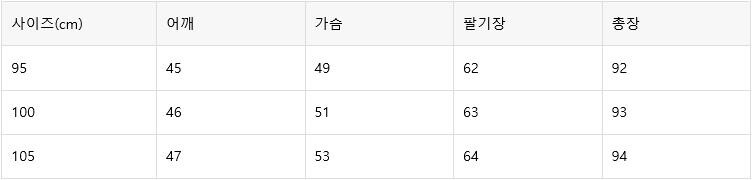 예시)본인사이즈100이면 100-105사이즈 구매 권장