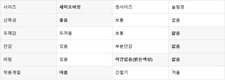 평소 입던 스타일과 달라 만족도가 낮을 수 있습니다