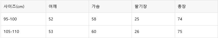 예시)본인사이즈100이면 100-105사이즈 구매 권장