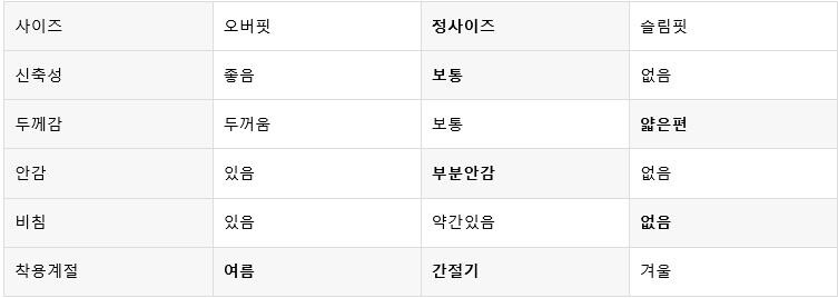 평소 입던 스타일과 달라 만족도가 낮을 수 있습니다