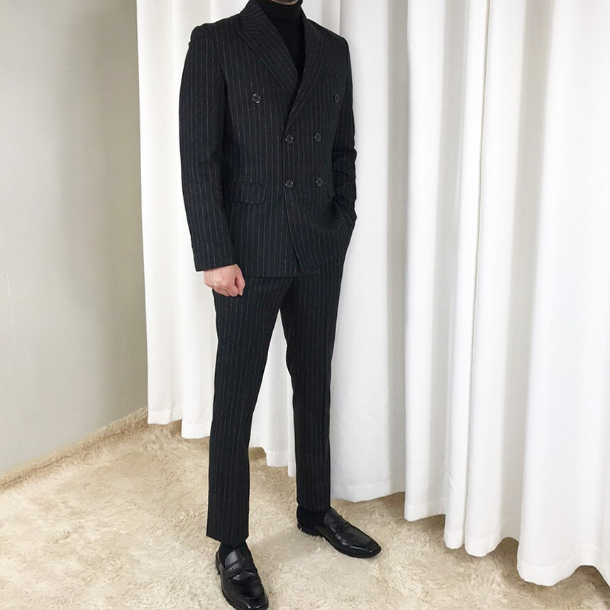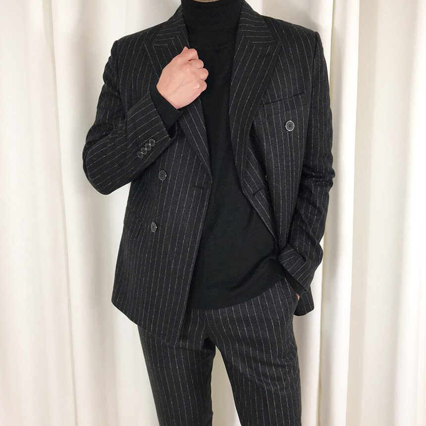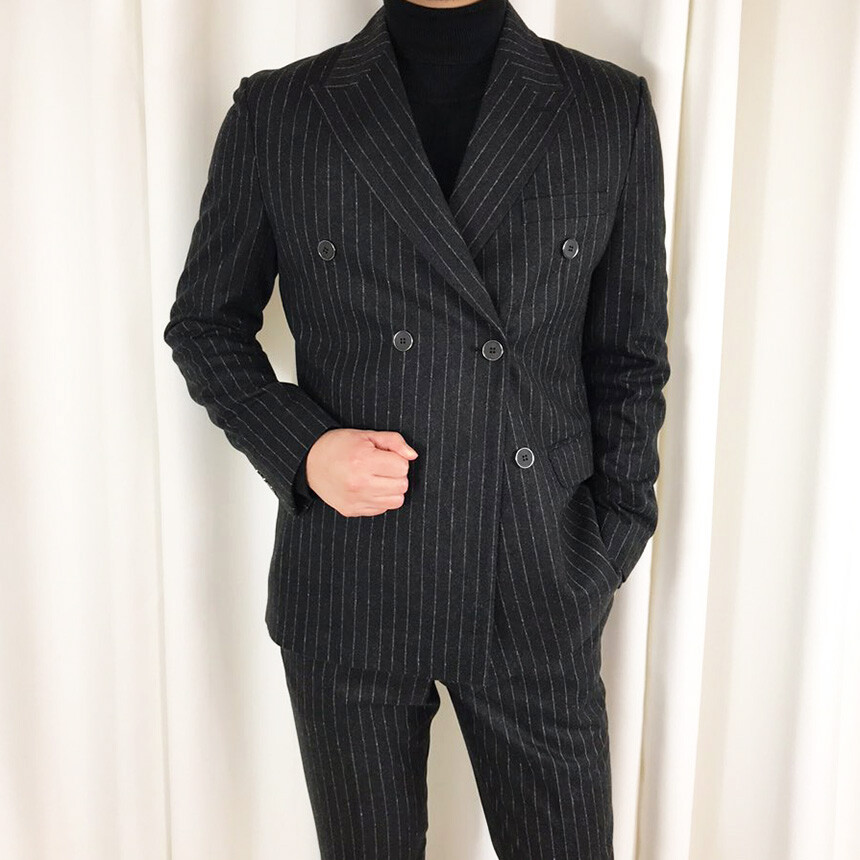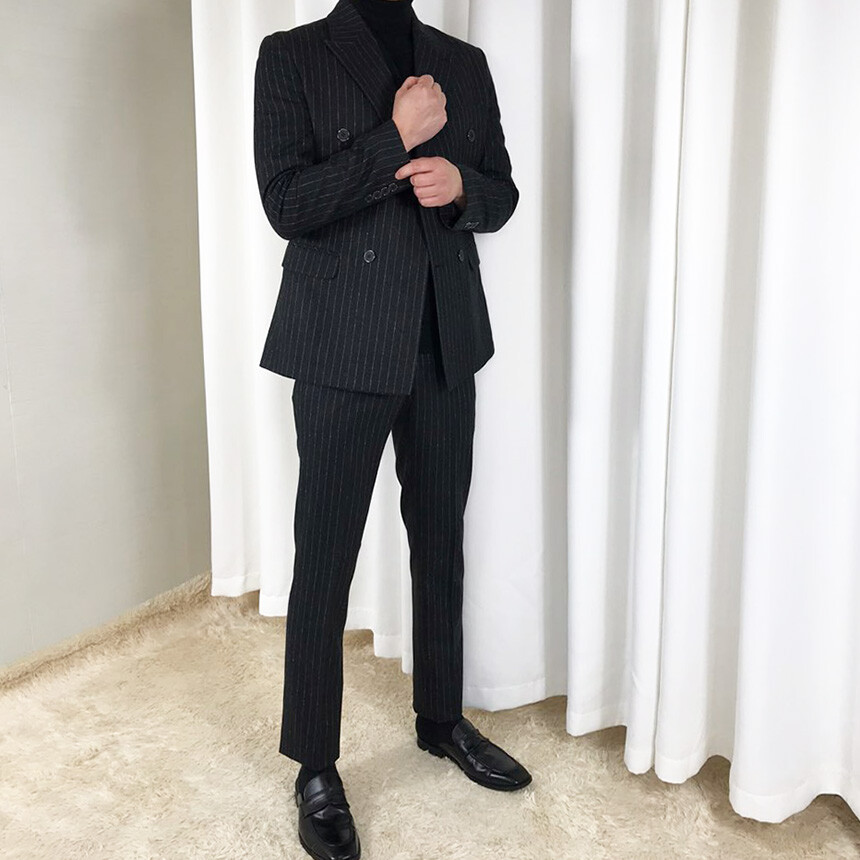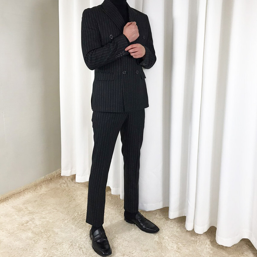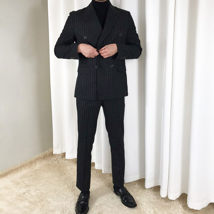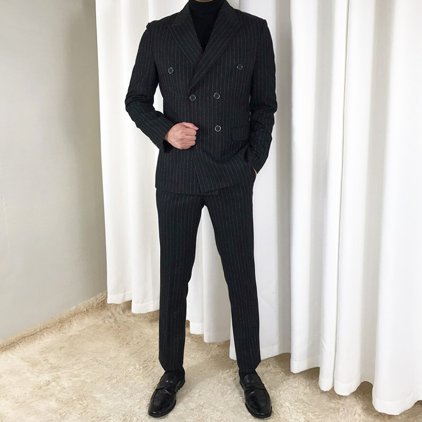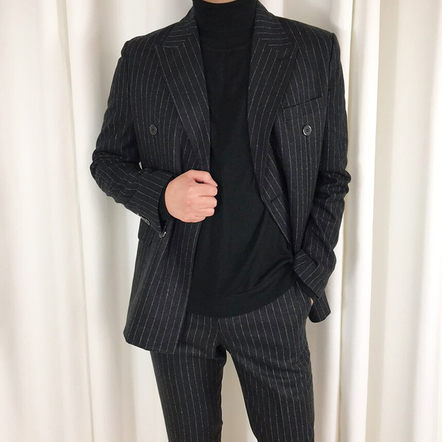 (winter) 슬림라인 스트라이프 미드블랙 더블셋업 [FLBS1157]