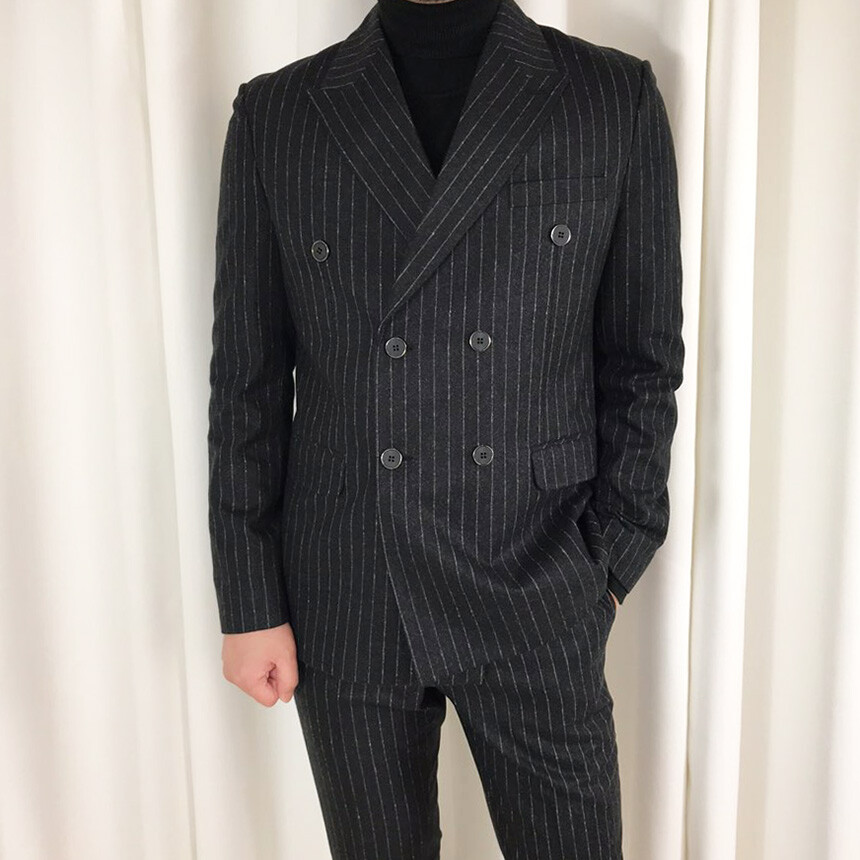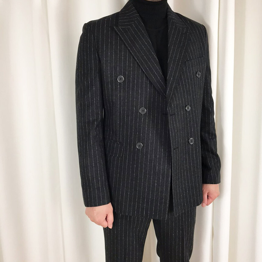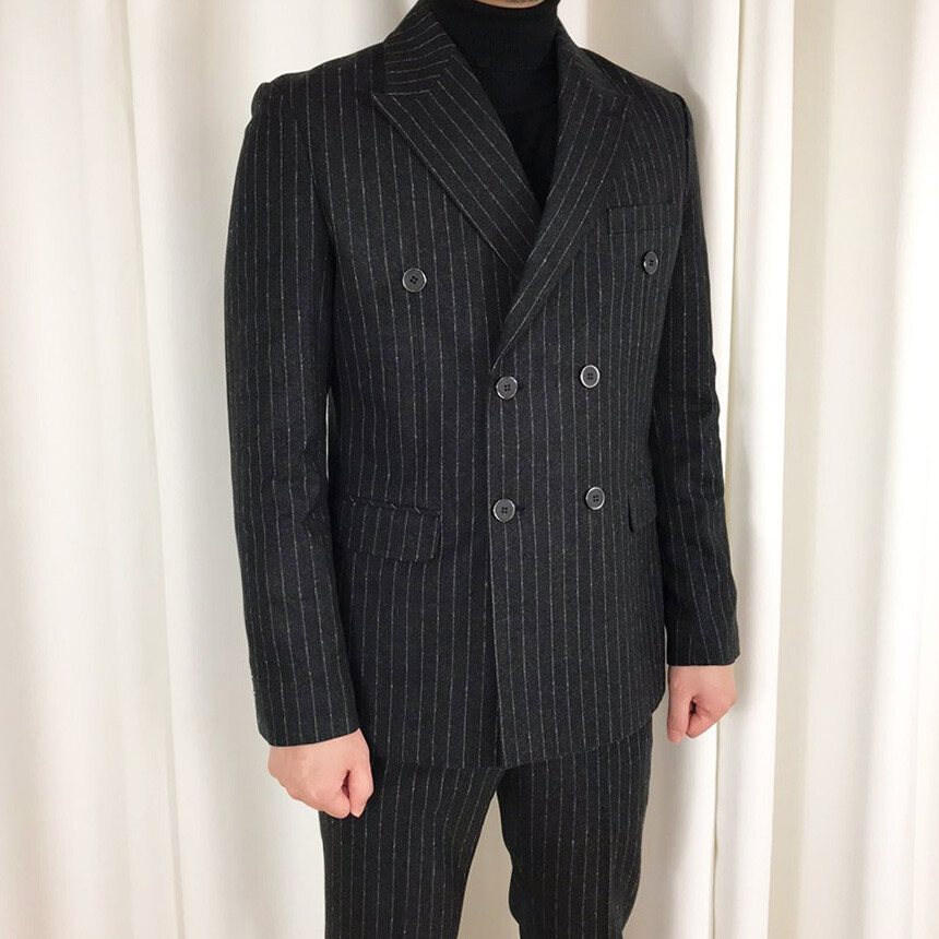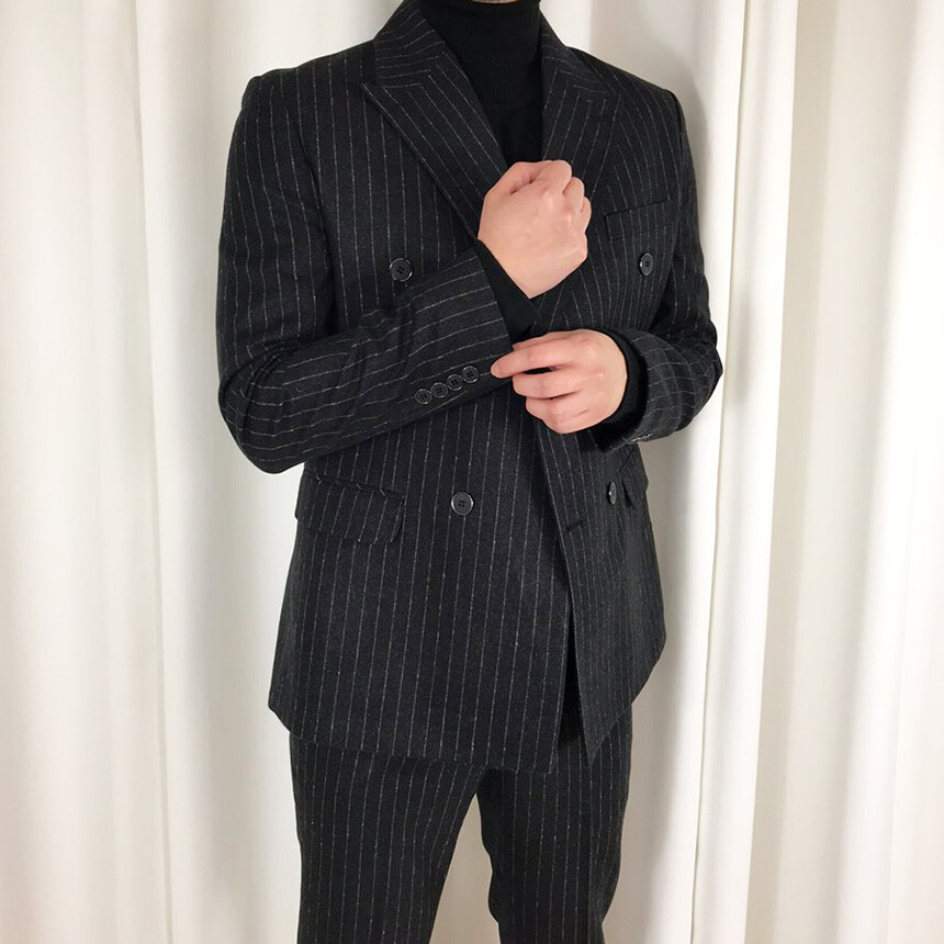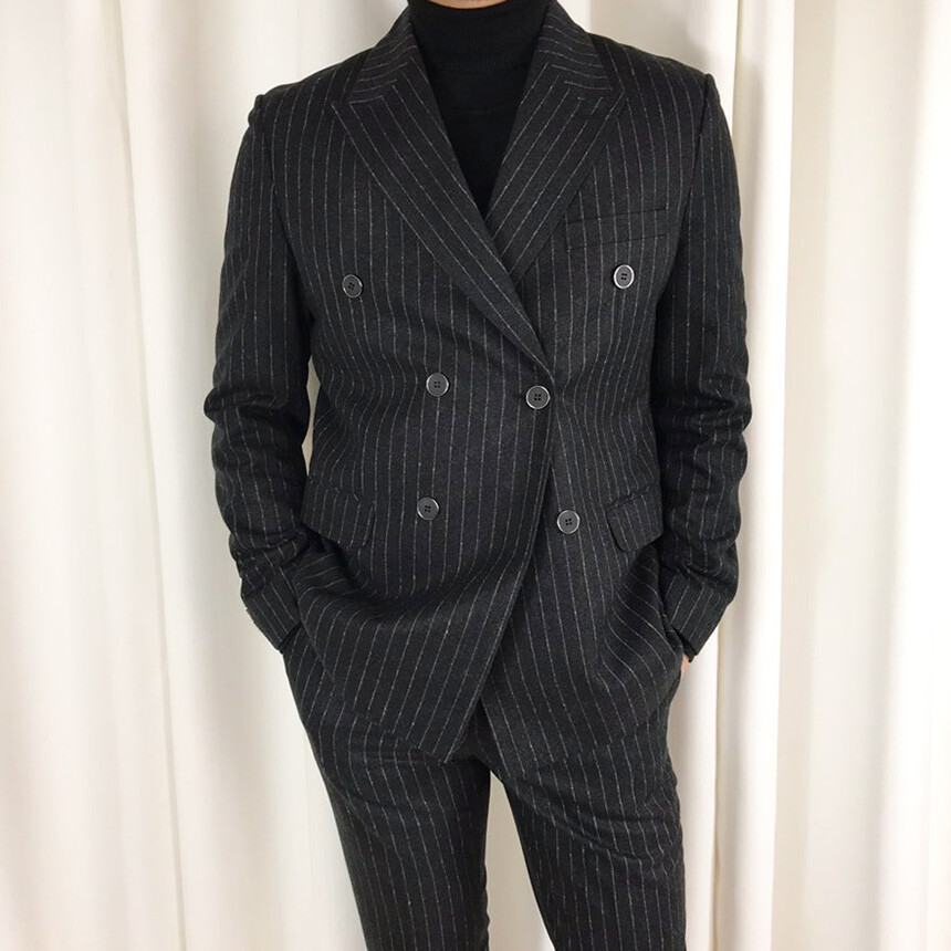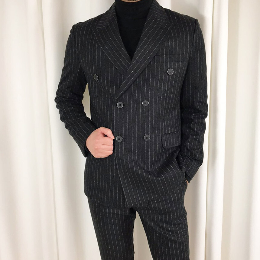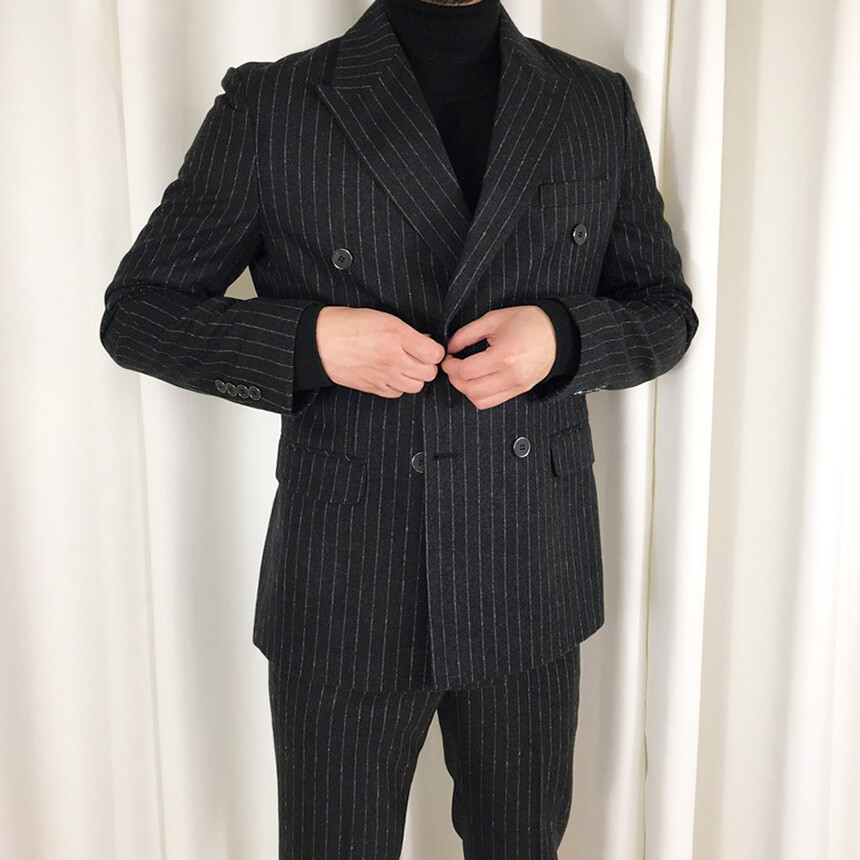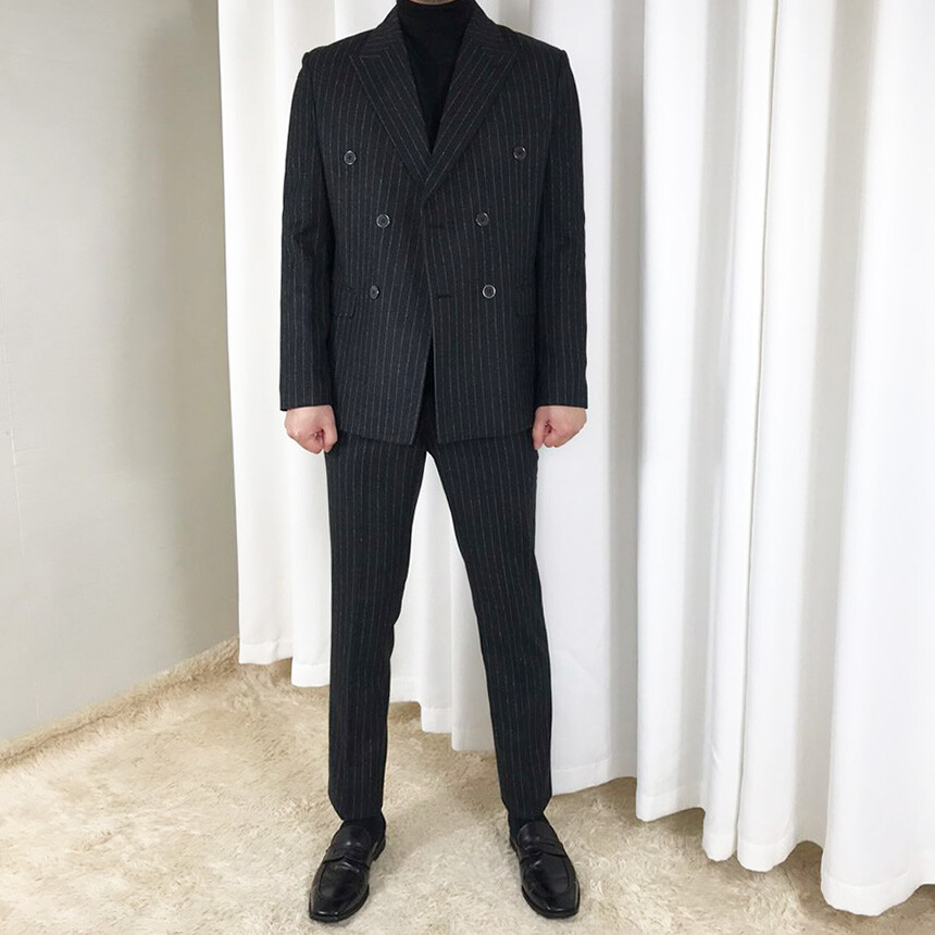(winter) 슬림라인 스트라이프 미드블랙 더블셋업 [FLBS1157]