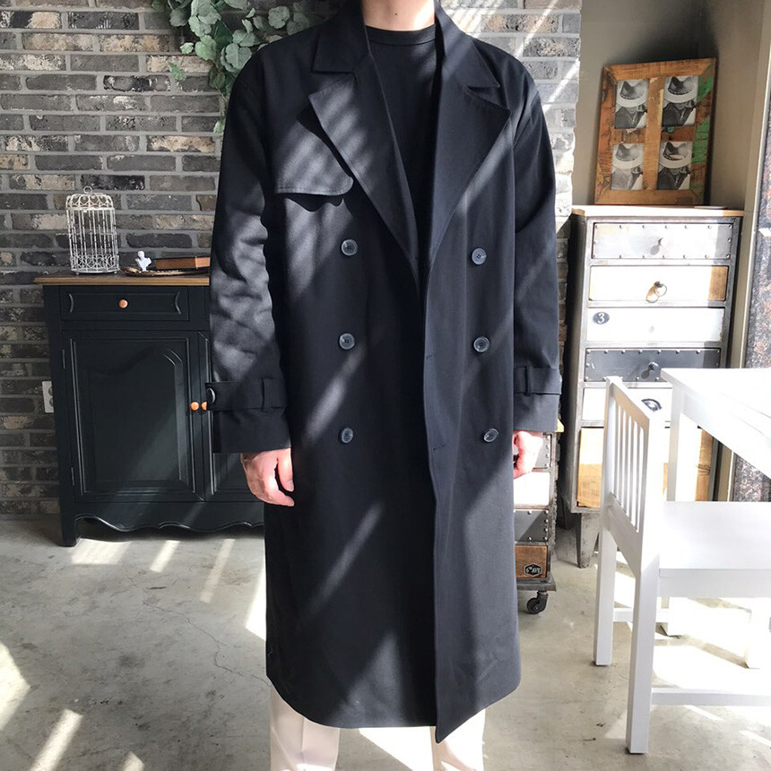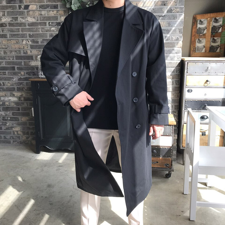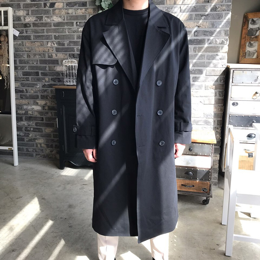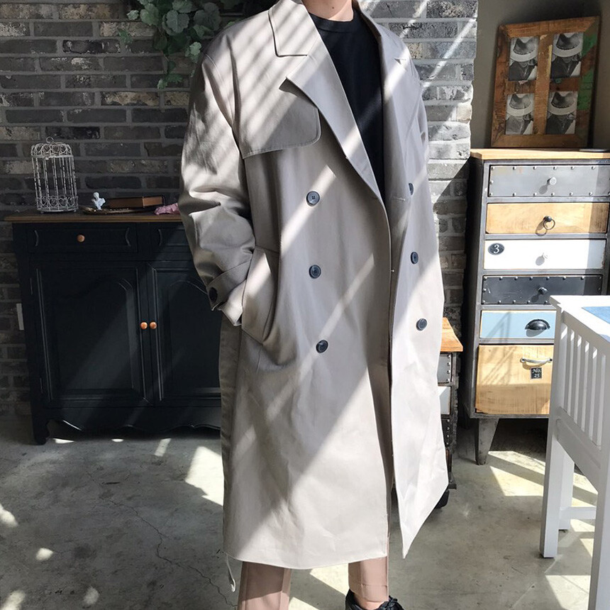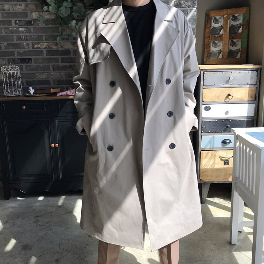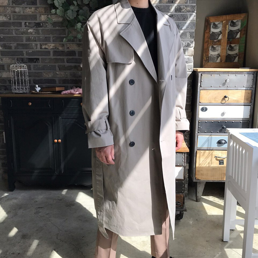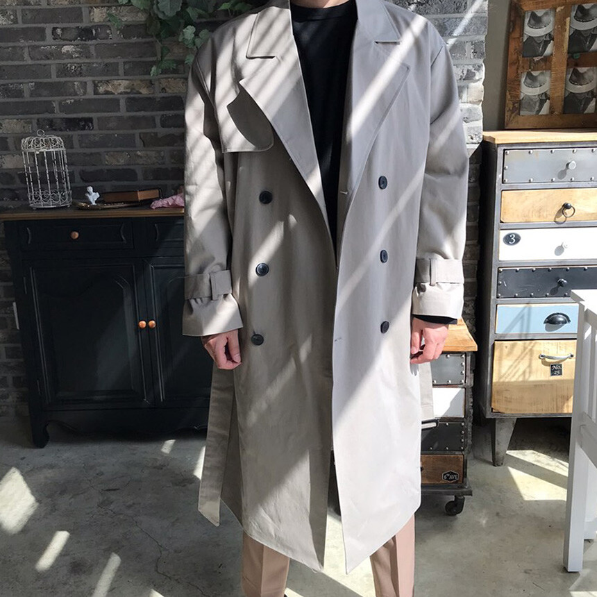더블 오버핏 면 트렌치 간절기 캐주얼 코트