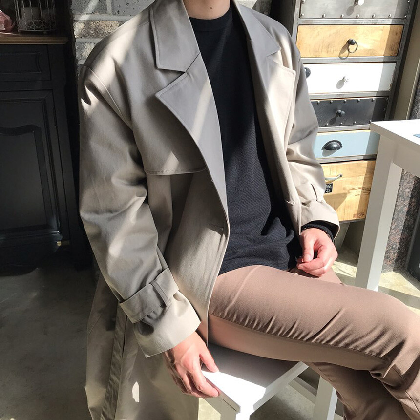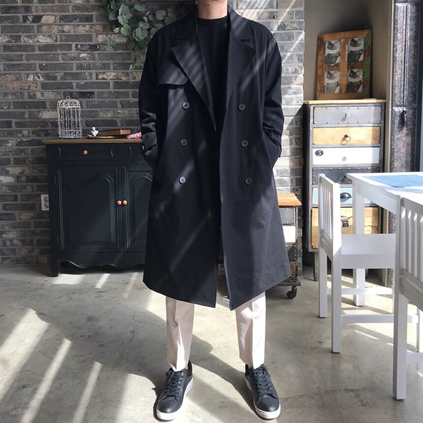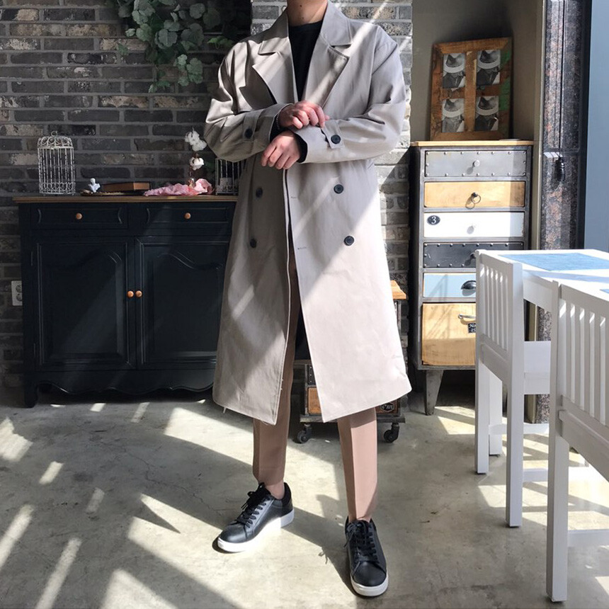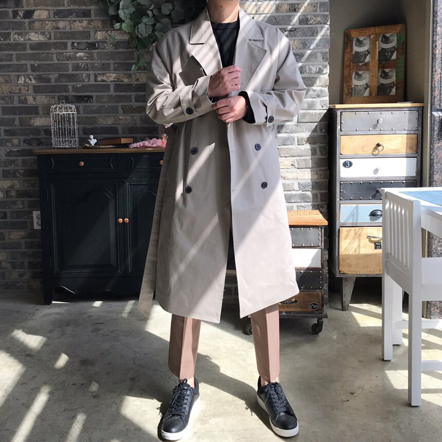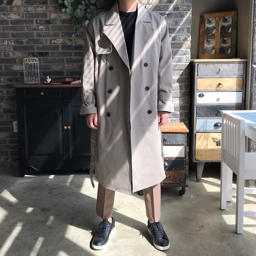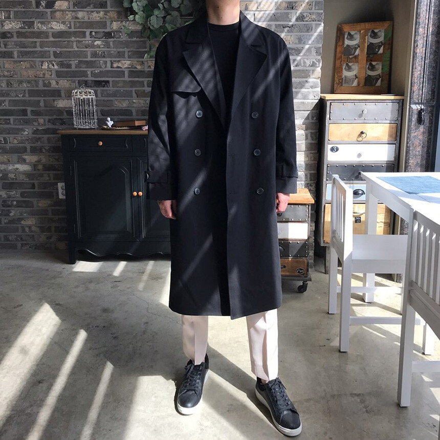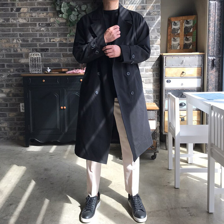 더블 오버핏 면 트렌치 간절기 캐주얼 코트