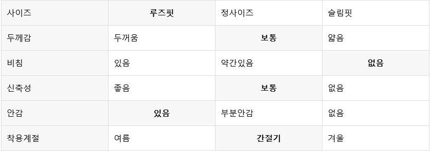 평소 입던 스타일과 달라 만족도가 낮을 수 있습니다
