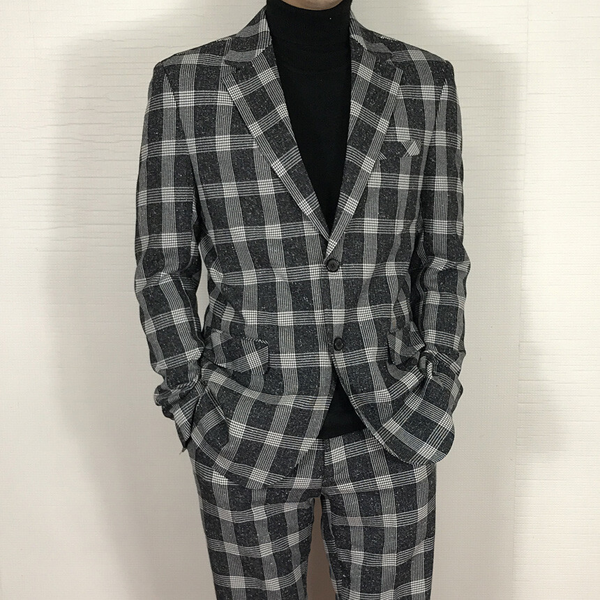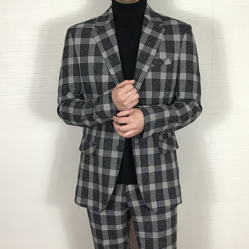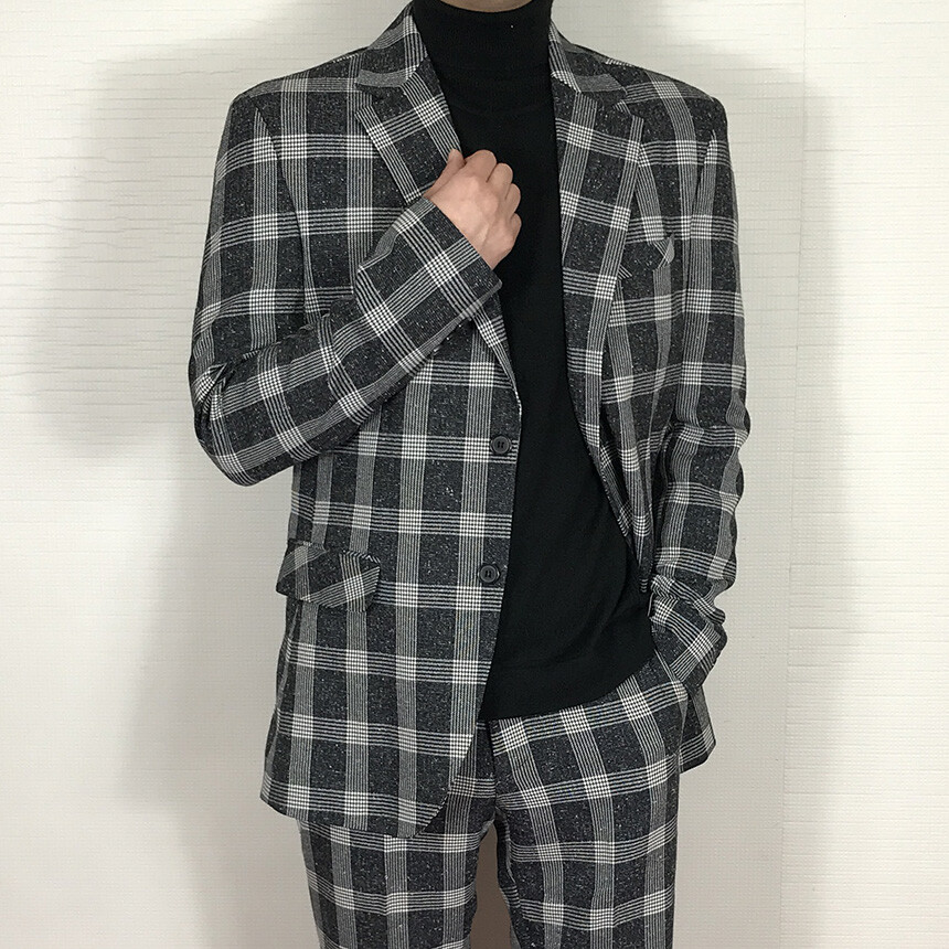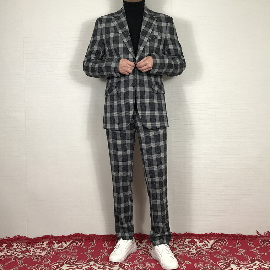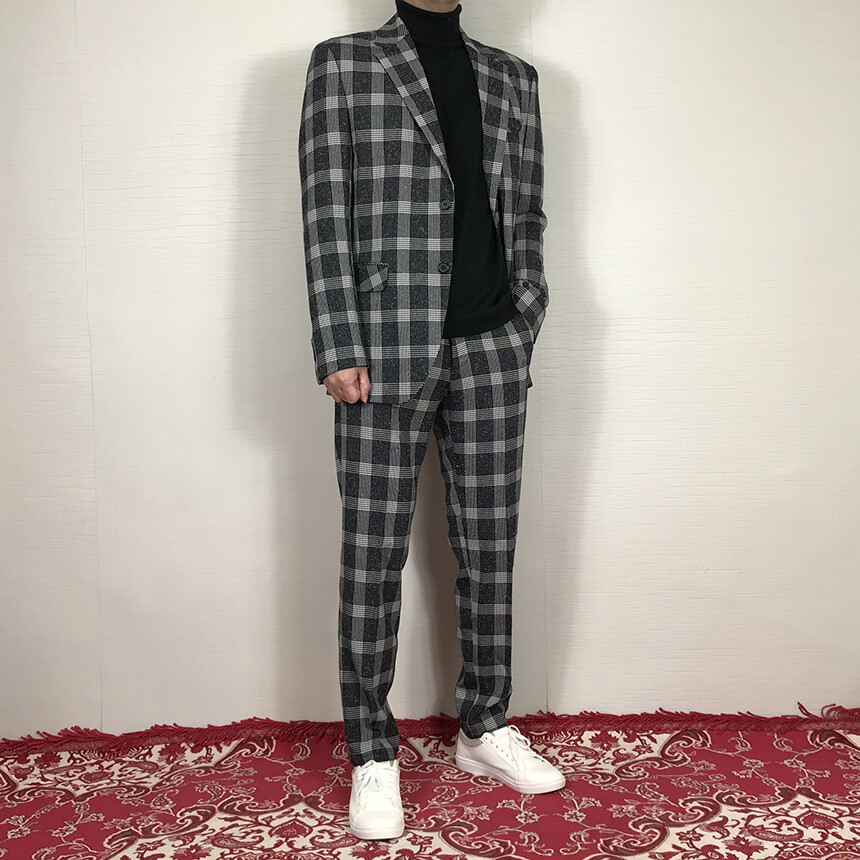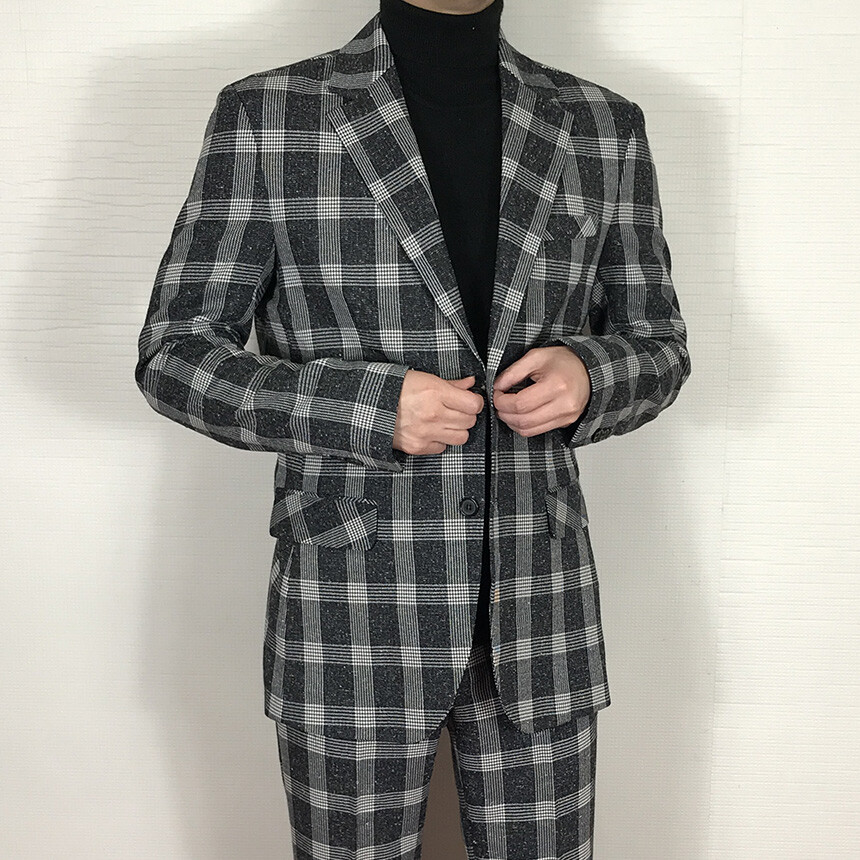 (spring) 스탠다드핏 블랙 글랜체크 조끼수트 [FLES1934]