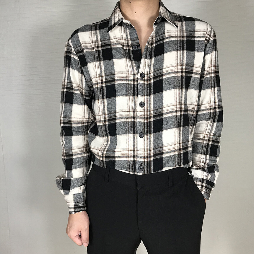(winter) 세미오버 사각체크 코튼셔츠(3col) [SLBF0040]