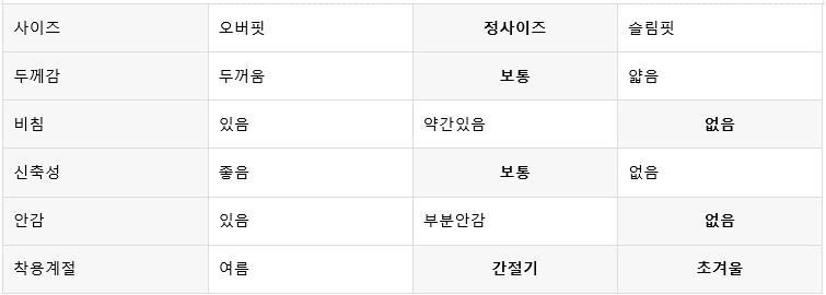 평소 입던 스타일과 달라 만족도가 낮을 수 있습니다