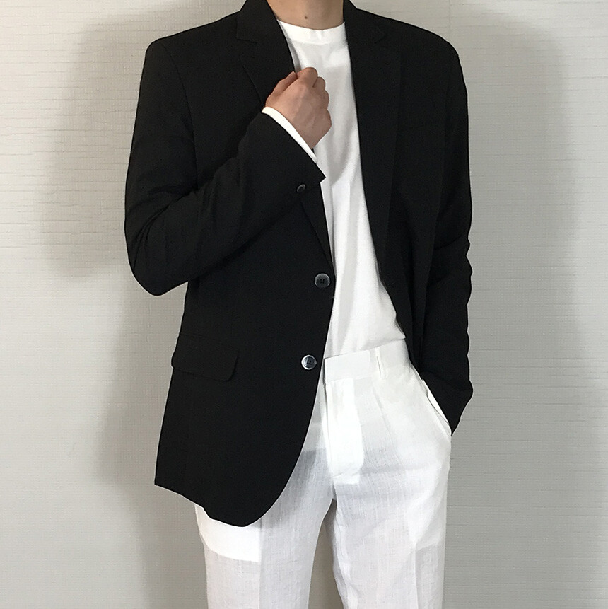 스탠다드핏 린넨 블랙 세미자켓