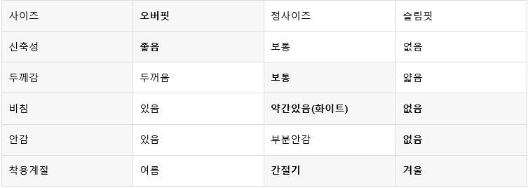 평소 입던 스타일과 달라 만족도가 낮을 수 있습니다