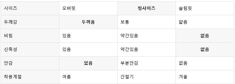 평소 입던 스타일과 달라 만족도가 낮을 수 있습니다