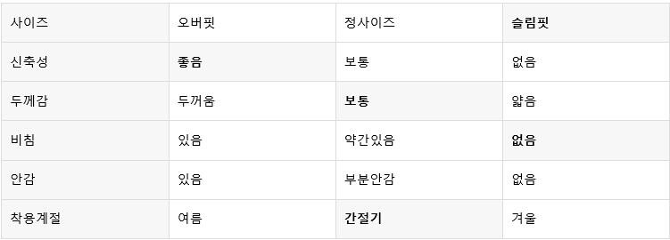 평소 입던 스타일과 달라 만족도가 낮을 수 있습니다