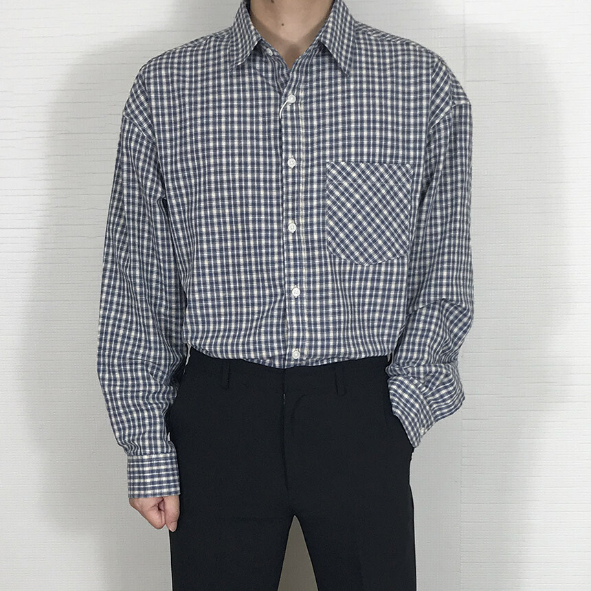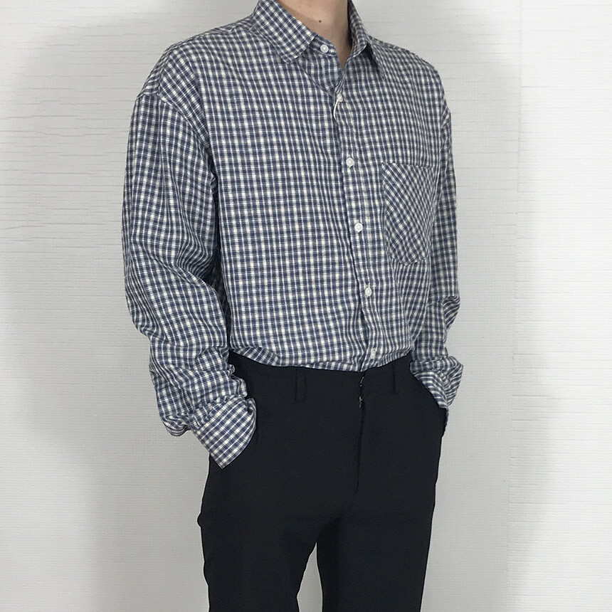 (autumn) 세미오버 체크 기본 코튼셔츠 (2col) [SLDF5009]