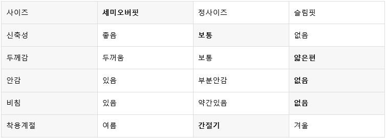 평소 입던 스타일과 달라 만족도가 낮을 수 있습니다