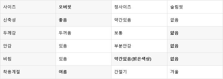 평소 입던 스타일과 달라 만족도가 낮을 수 있습니다