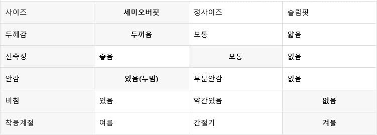평소 입던 스타일과 달라 만족도가 낮을 수 있습니다