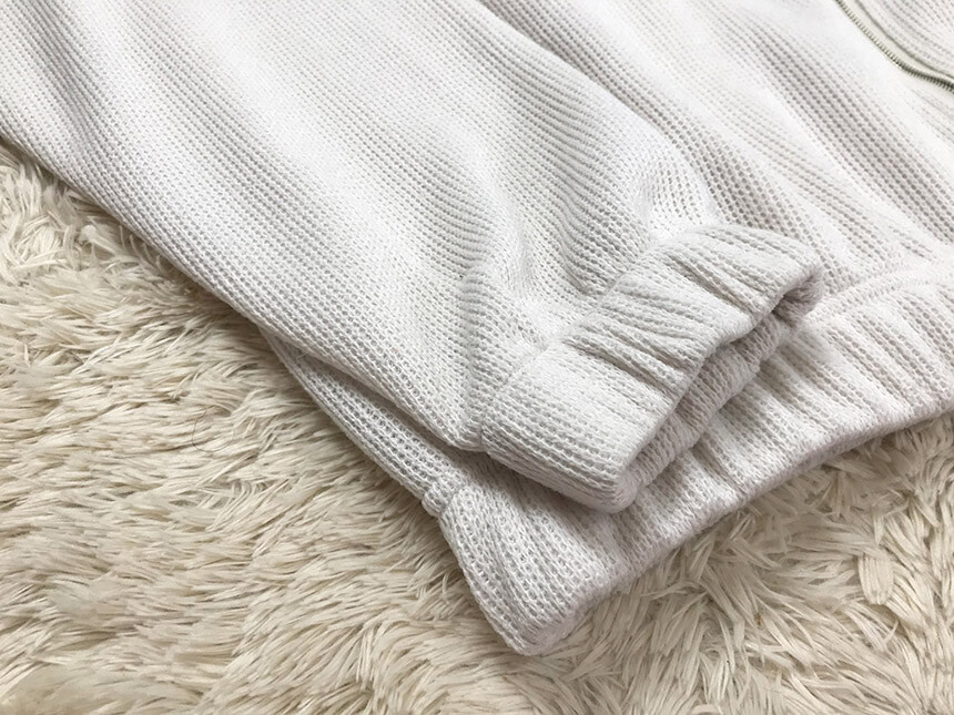 - 실밥처리,니트류의 직조시의 발생하는 잡실, 소재특성상 있는 스크래치, 본드자국, 워싱이나 패턴의 차이등 대량생산으로 인한 사소한 부분