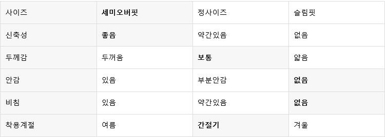 평소 입던 스타일과 달라 만족도가 낮을 수 있습니다