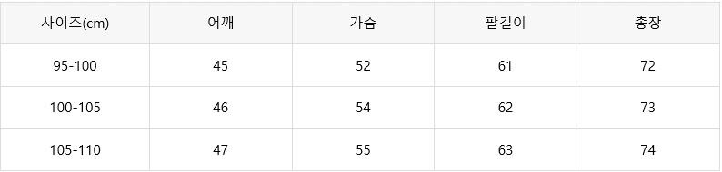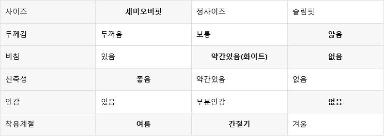 예시)본인사이즈100이면 100-105사이즈 구매 권장