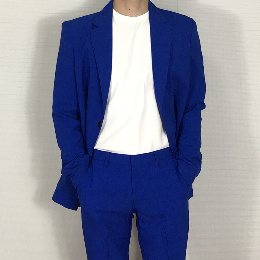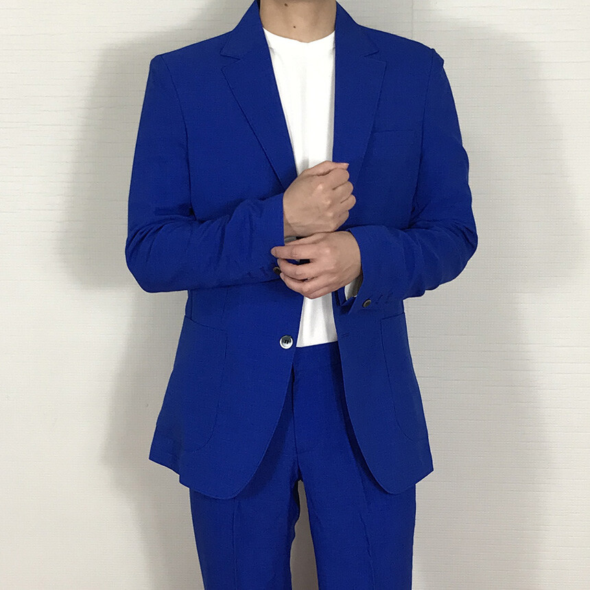 스탠다드핏 린넨 코발트블루 아웃포켓 자켓