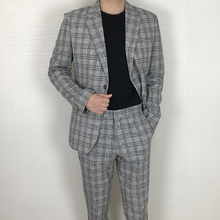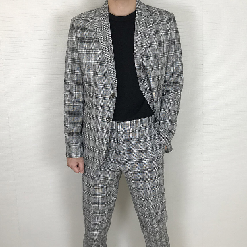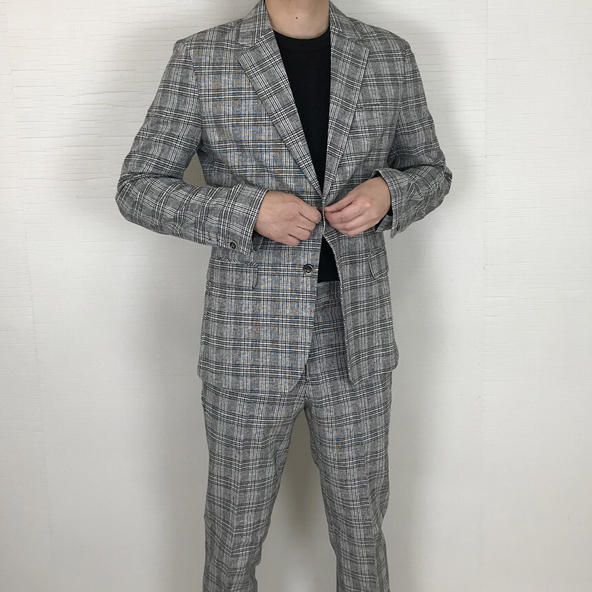 (summer) 슬림 그레이 체크 린넨 클래식 수트 [BXAFLCM1839]