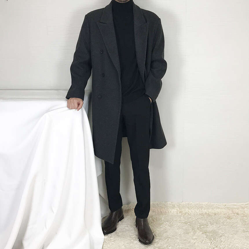 (winter) 오버핏 다크차콜 더블 모직코트 [CLCW0209]