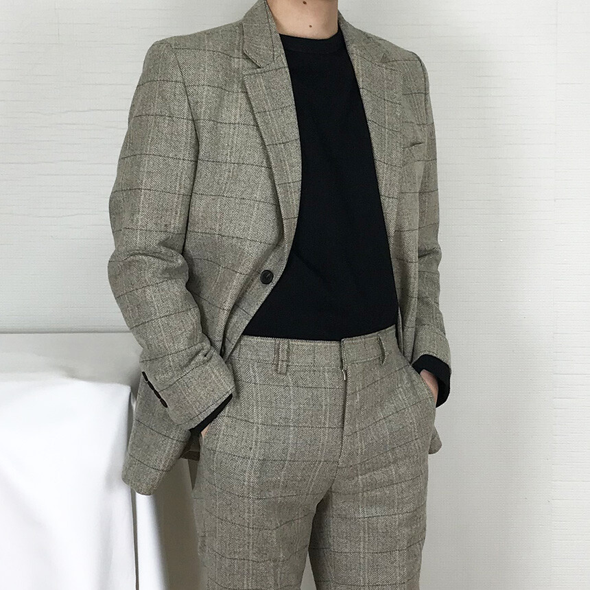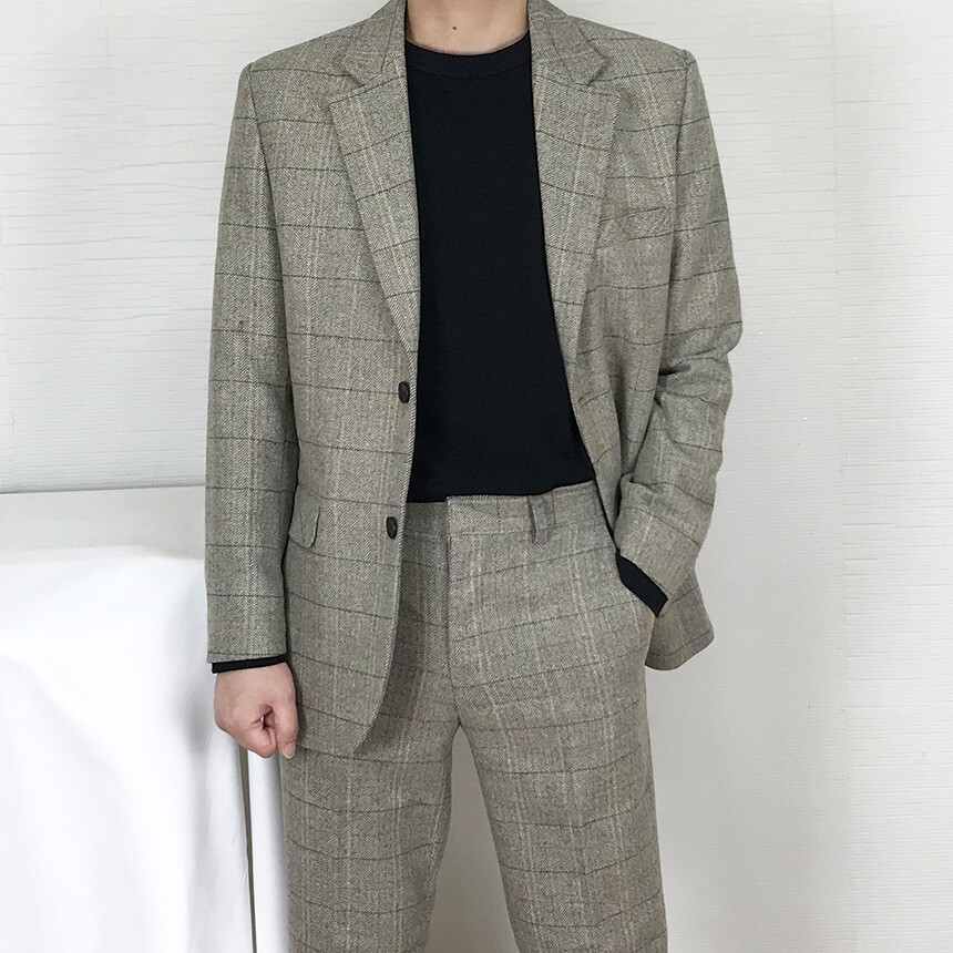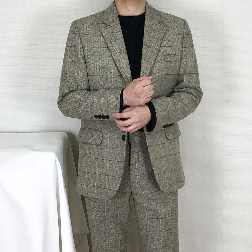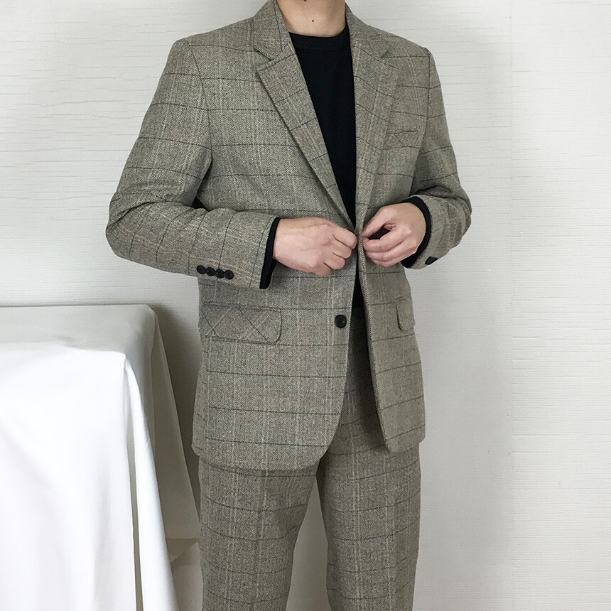 (winter) 베이지 헤링본체크 울수트 [FLCW1909]