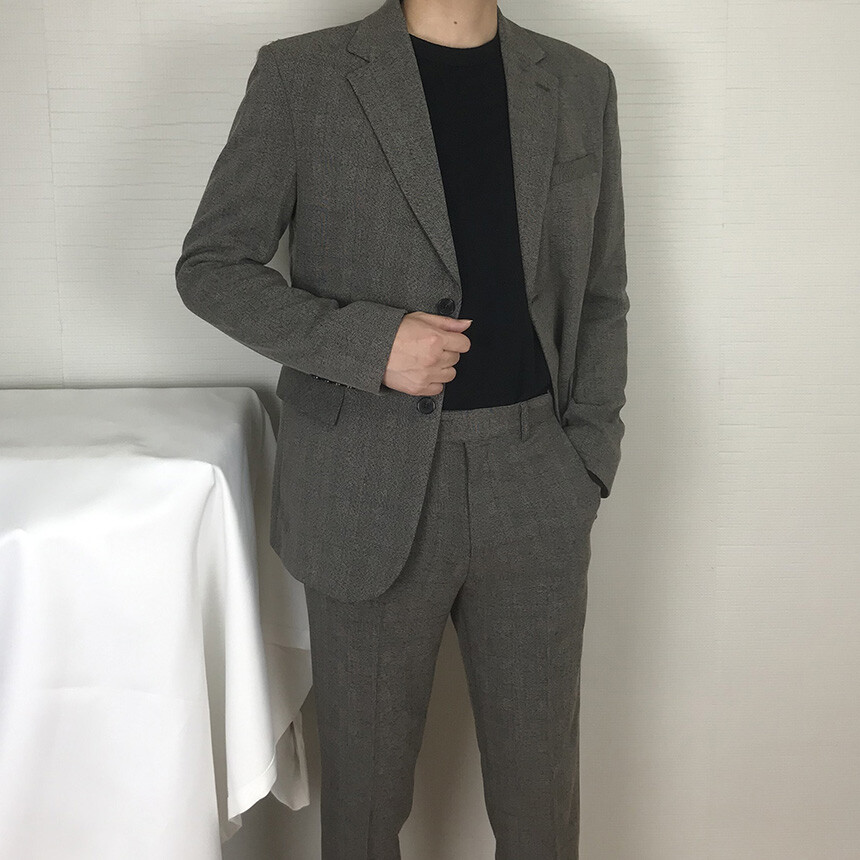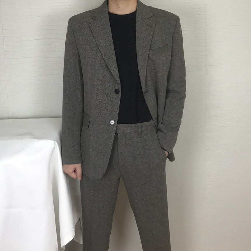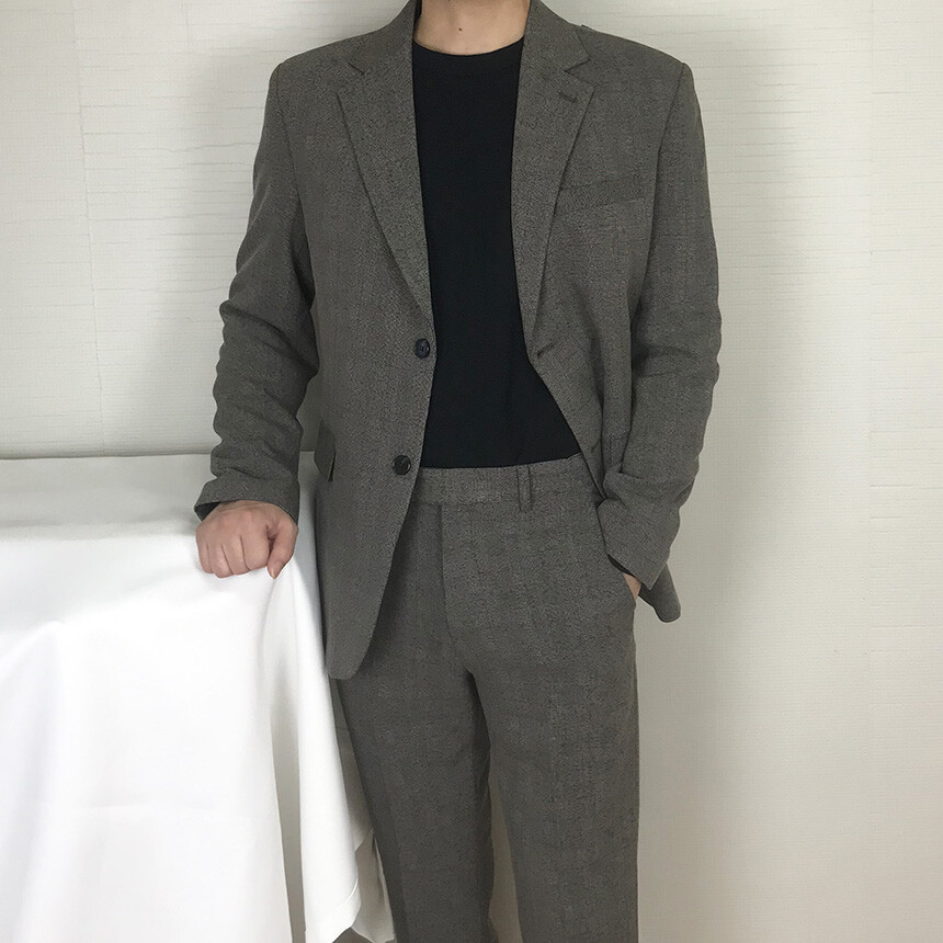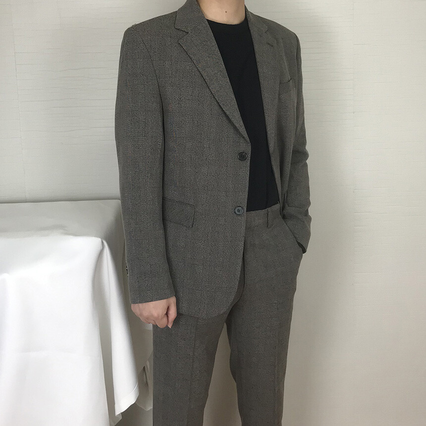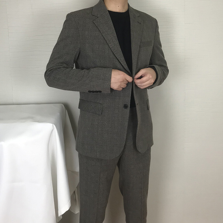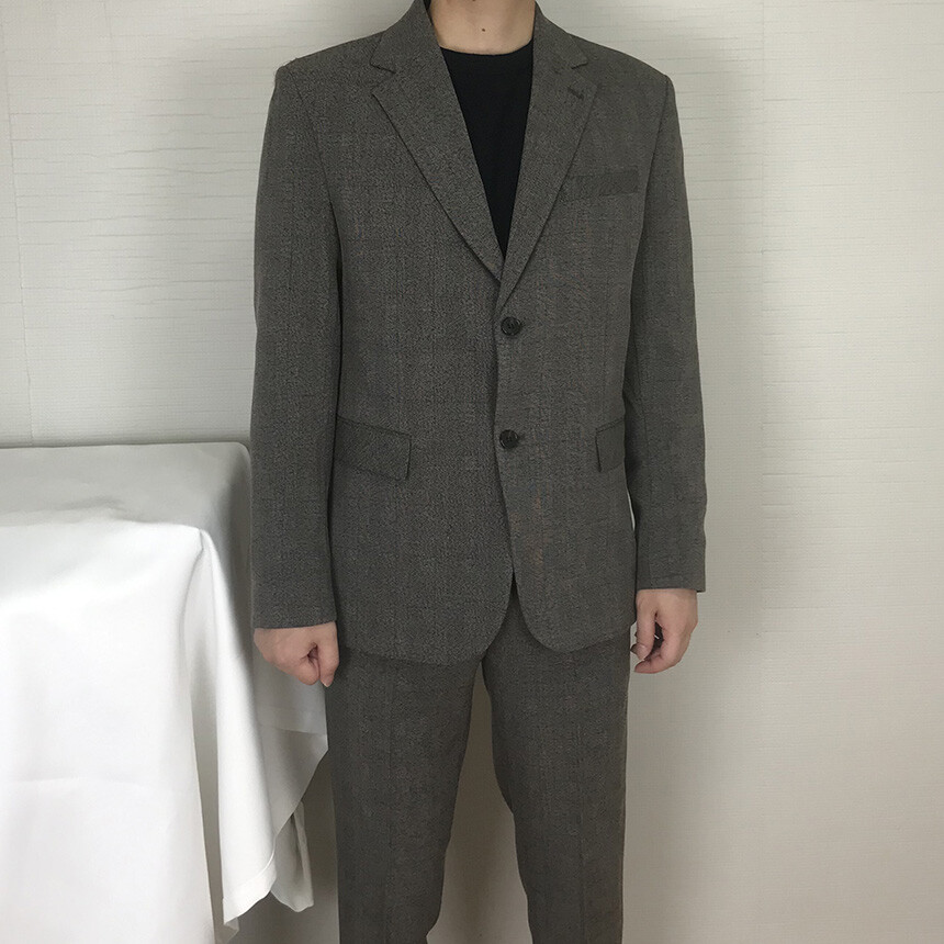(autumn & winter) 연체크 차콜브라운 캐주얼 울수트 [FLCF1905]