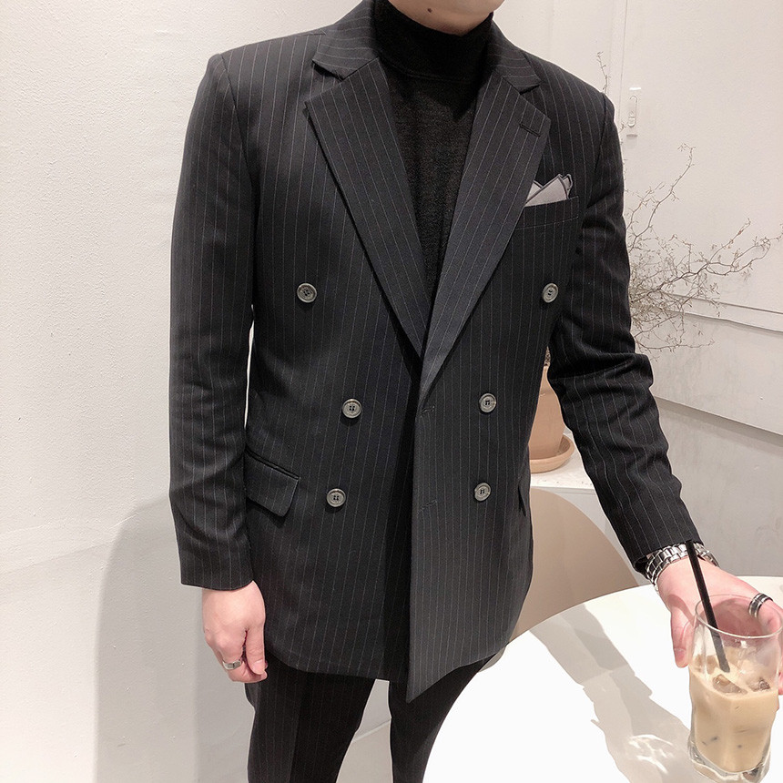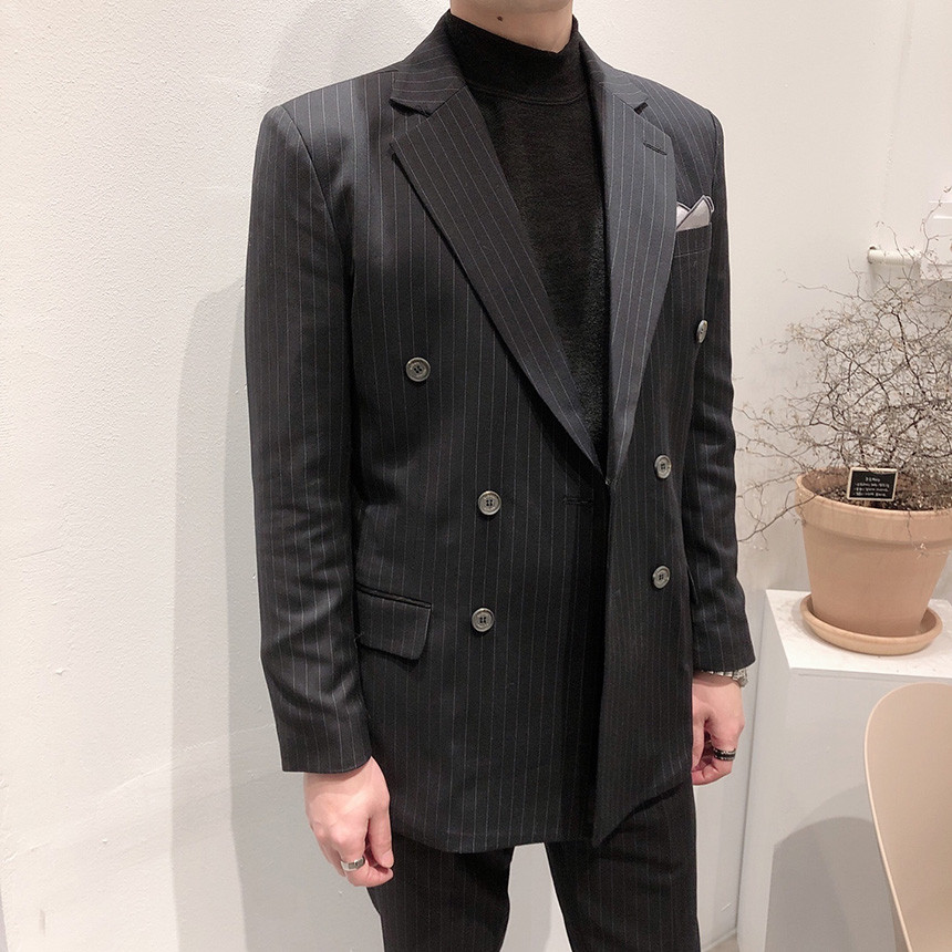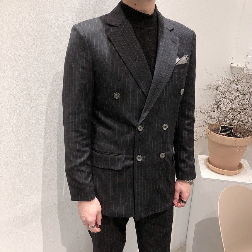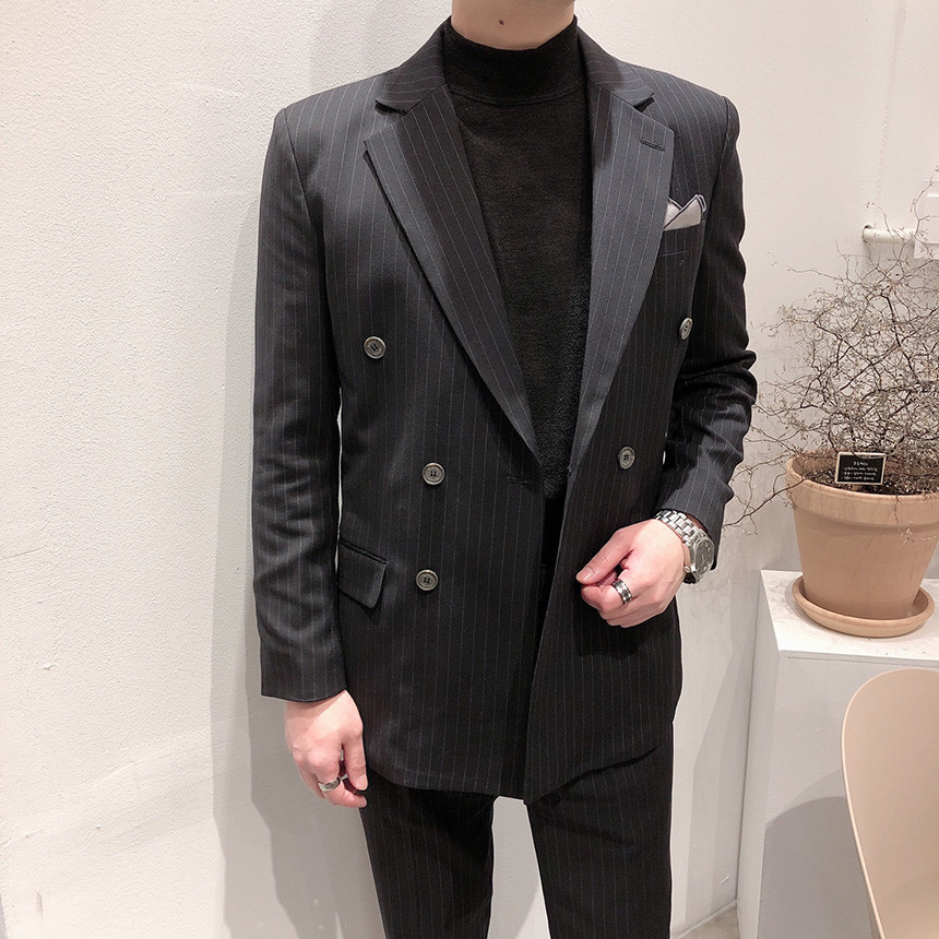 (spring) 슬림핏 스트라이프 블랙 더블정장 [75012]