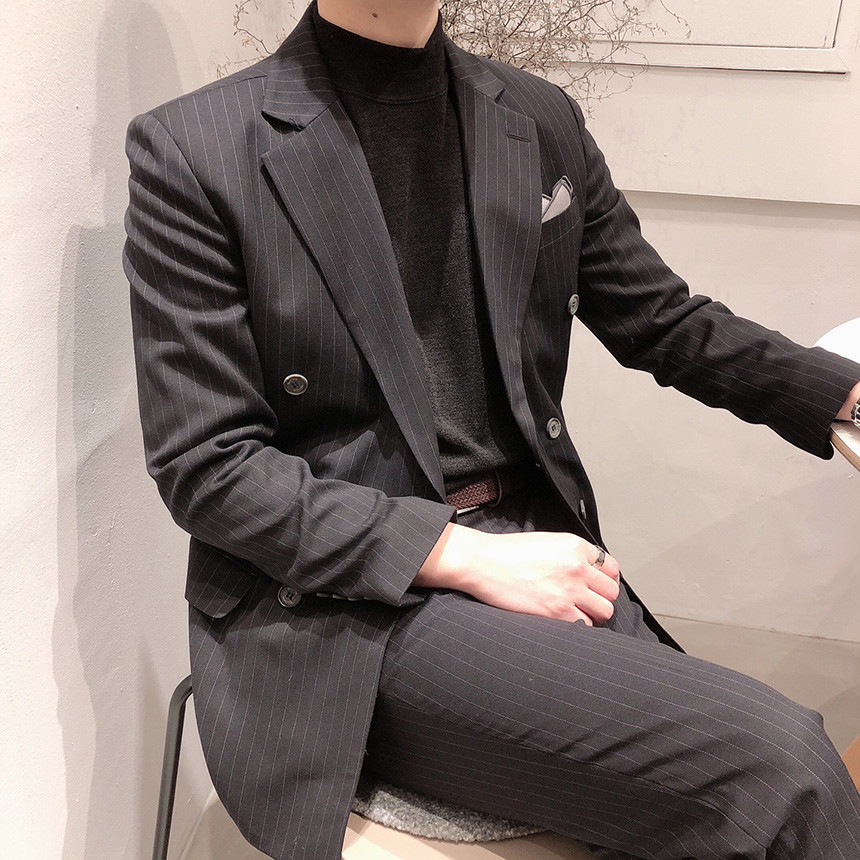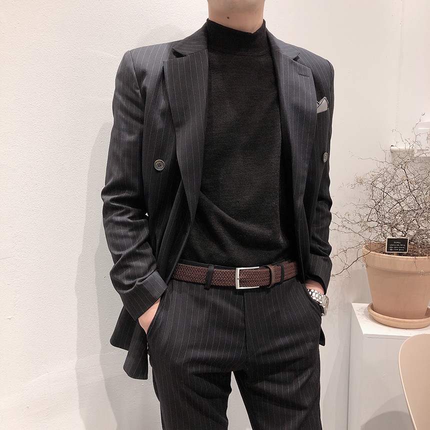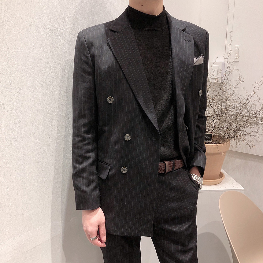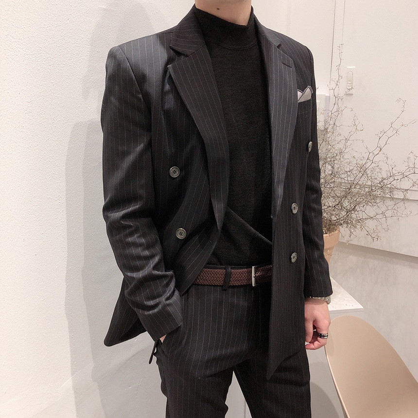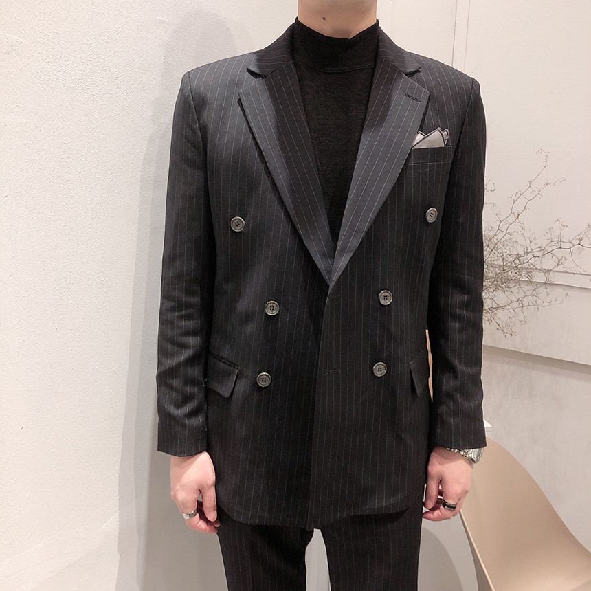 (spring) 슬림핏 스트라이프 블랙 더블정장 [75012]