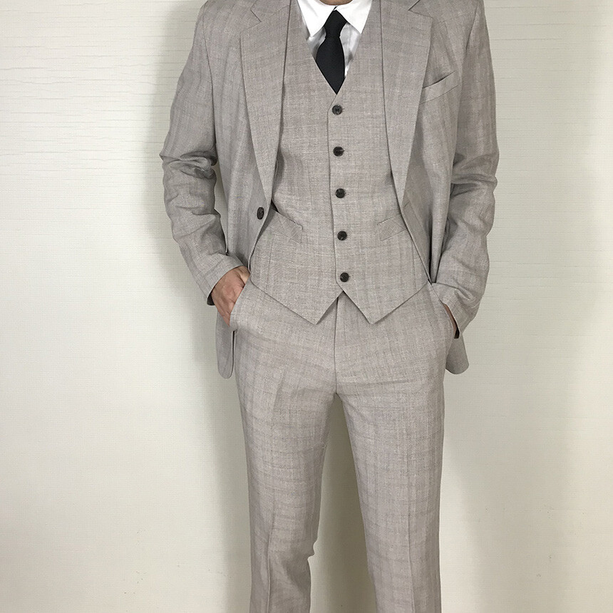슬림 그레이베이지 글렌체크 세미정장