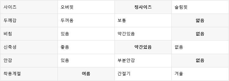 평소 입던 스타일과 달라 만족도가 낮을 수 있습니다