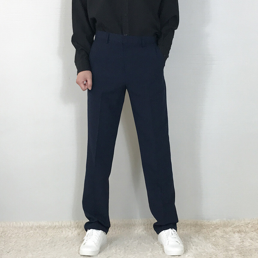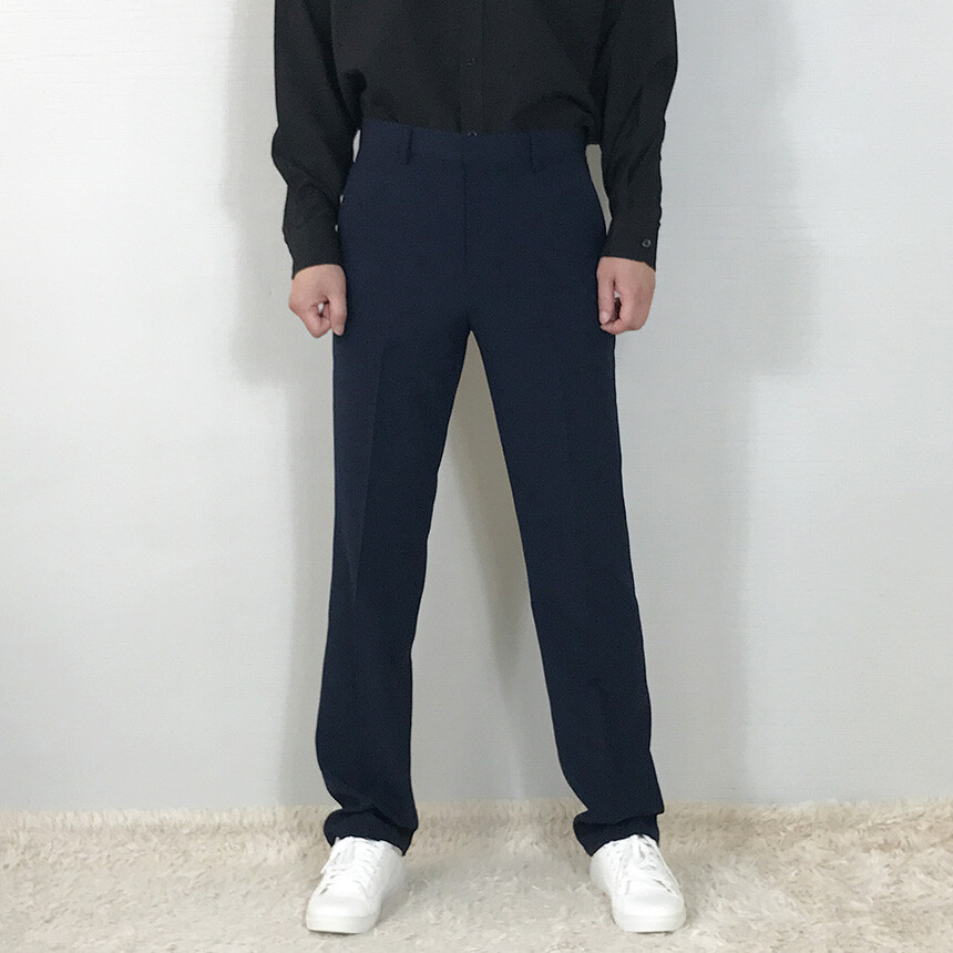 린넨라이크 네이비 일자슬랙스