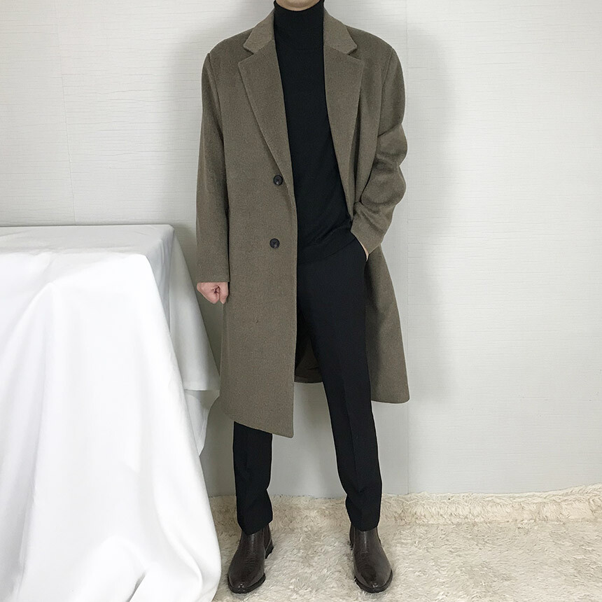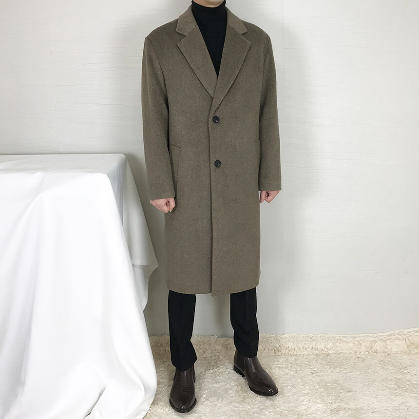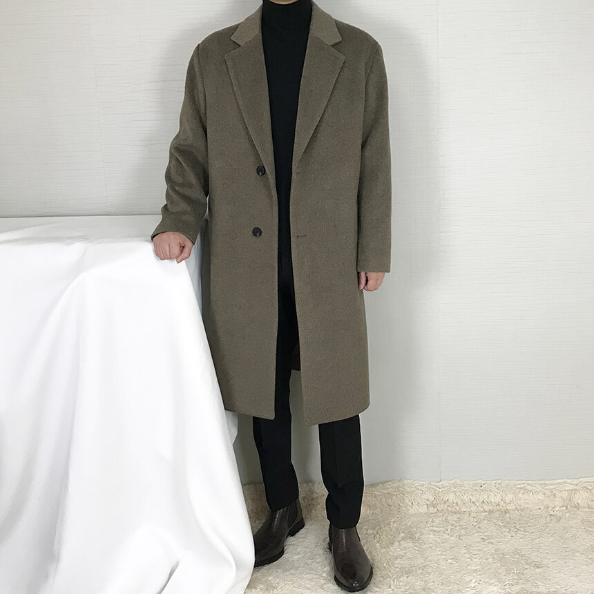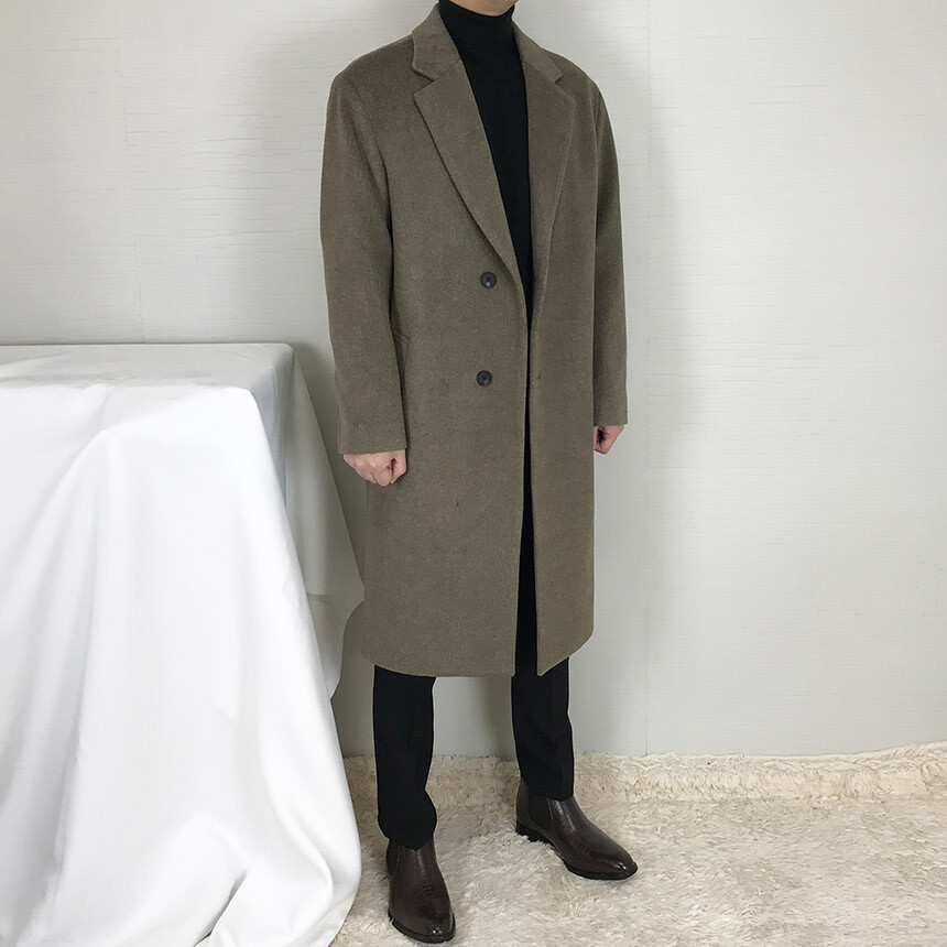 루즈핏라인 카키브라운 캐시미어 반더블코트