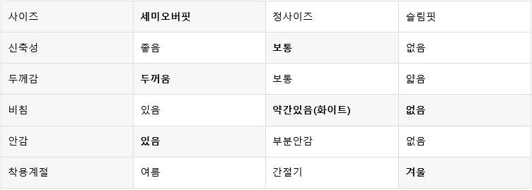 평소 입던 스타일과 달라 만족도가 낮을 수 있습니다