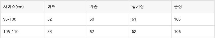 예시)본인사이즈100이면 100-105사이즈 구매 권장