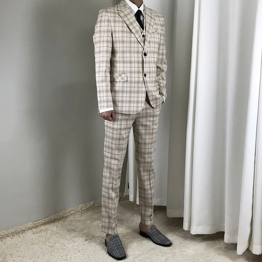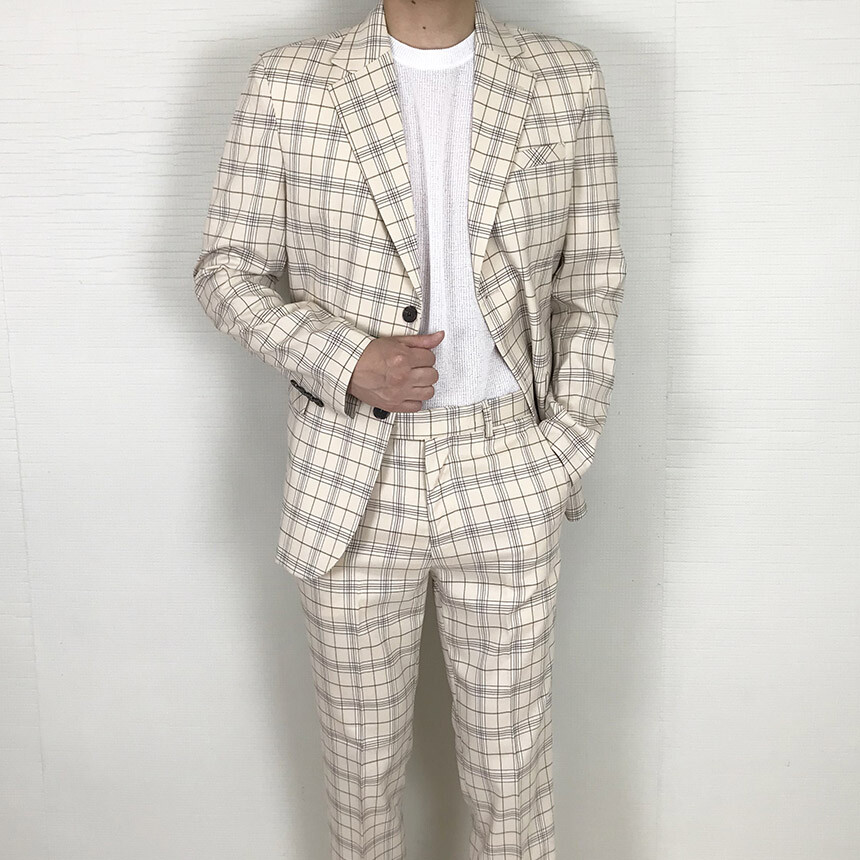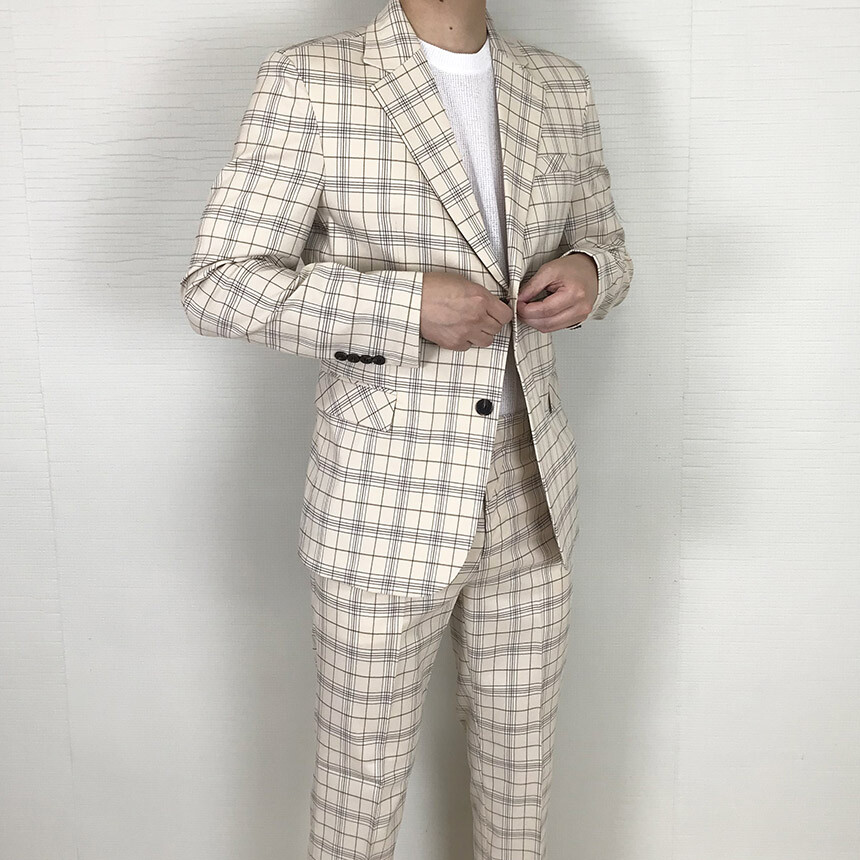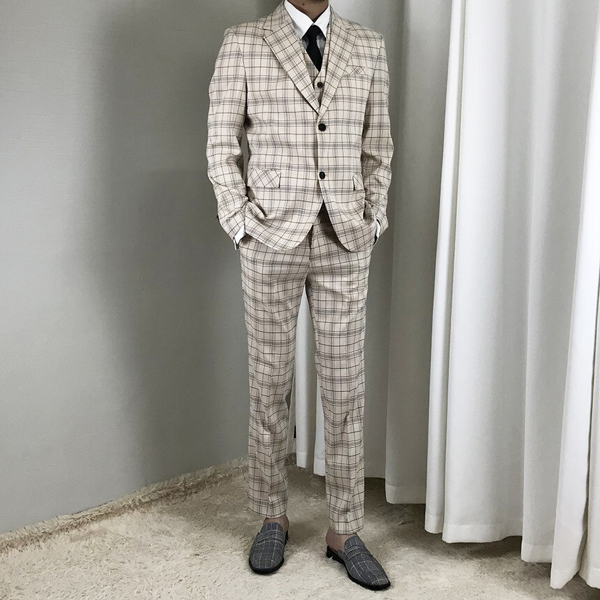 (summer) 스노우베이지 체크 쿨링 세미 정장 [BXAFLCM1833]