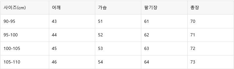 - 사이즈는 재는 방법에따라 약간씩 다를 수 있으며, 기성복으로 대량생산하기 때문에 사이즈는 약간씩 오차가 있을 수 있습니다