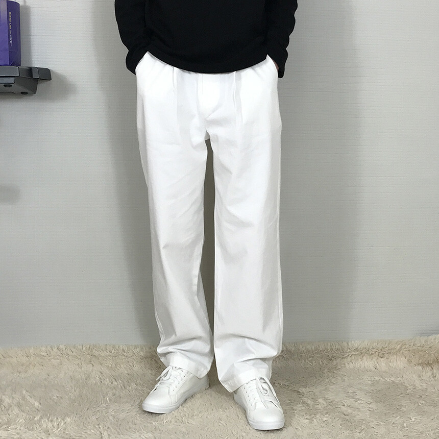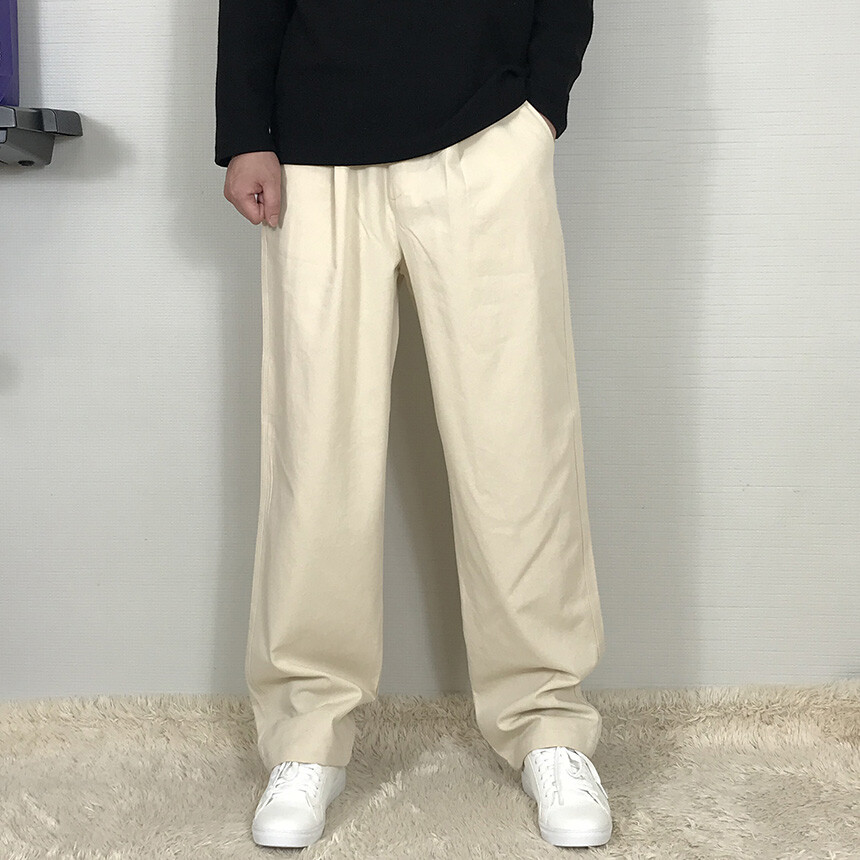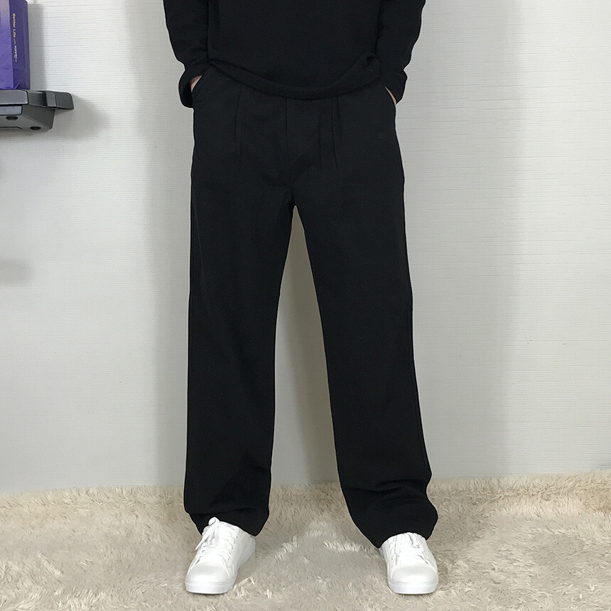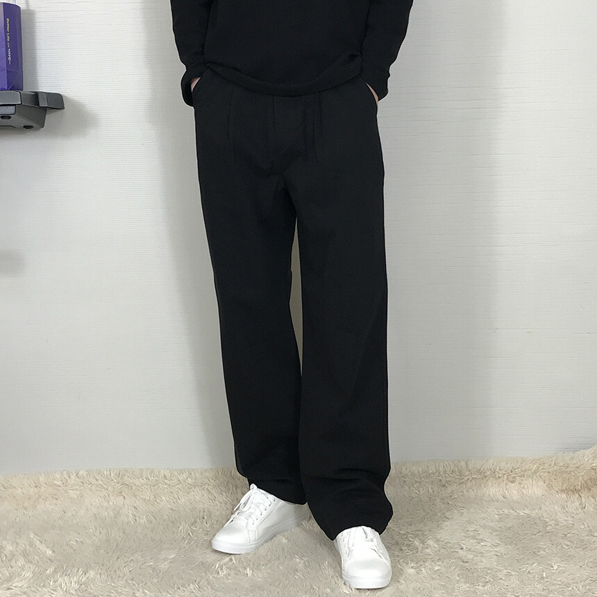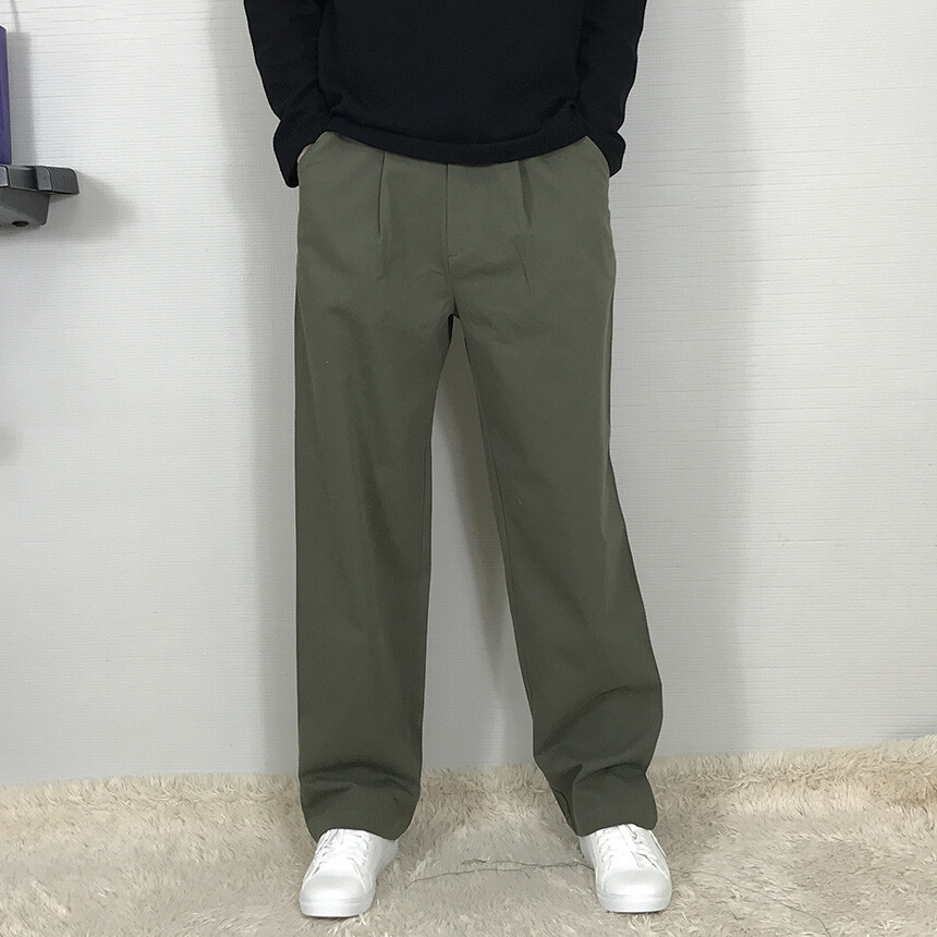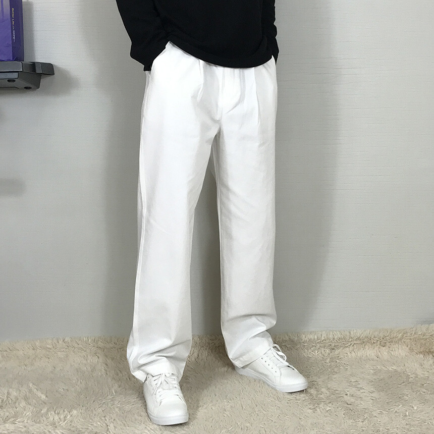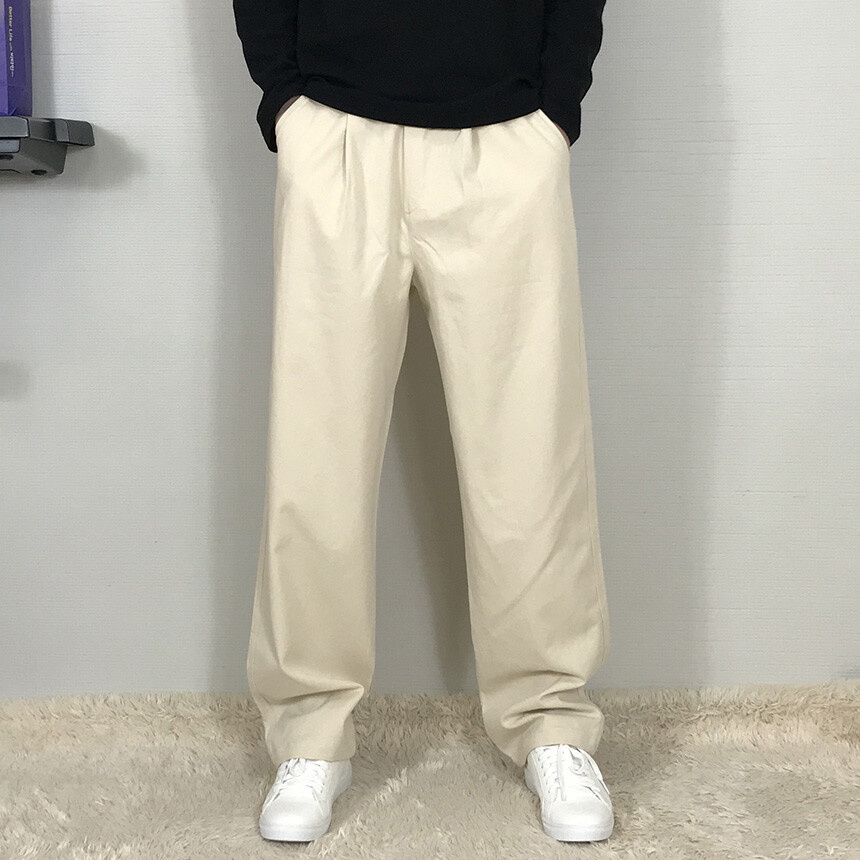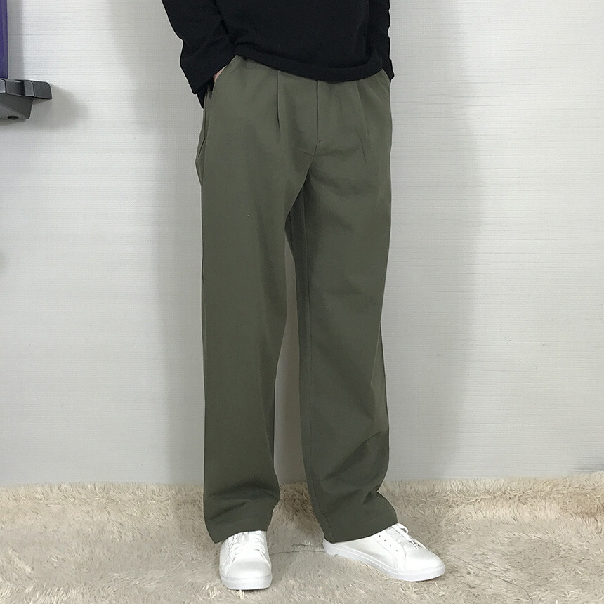 오버라인 원턱 와이드 반밴딩 면팬츠