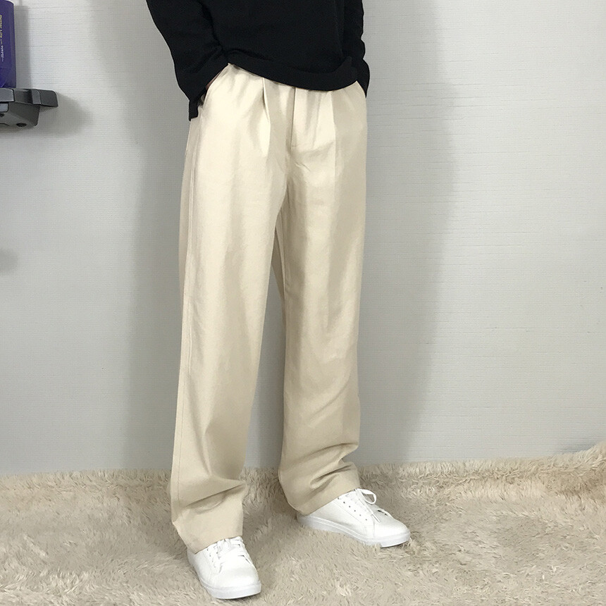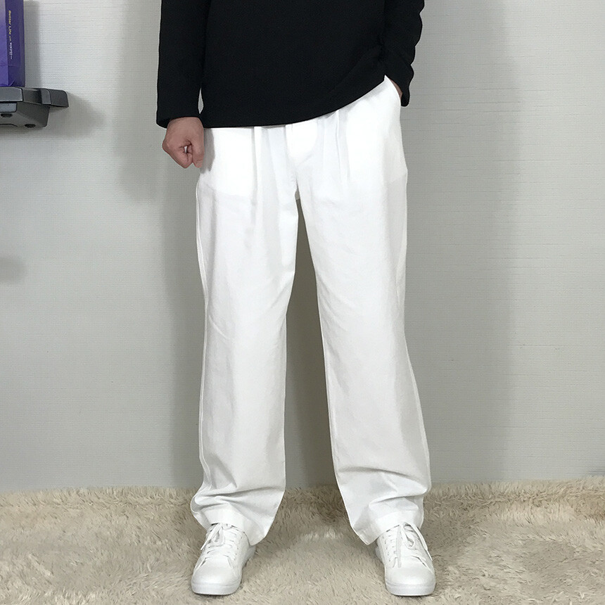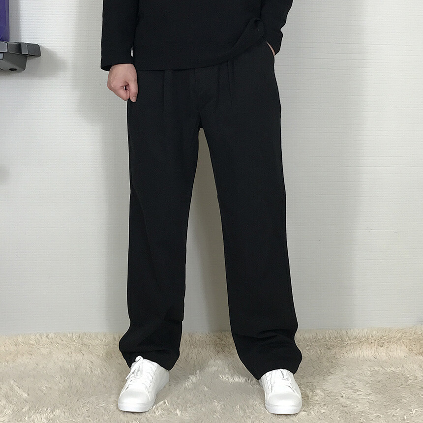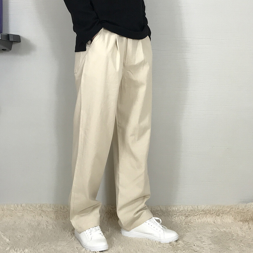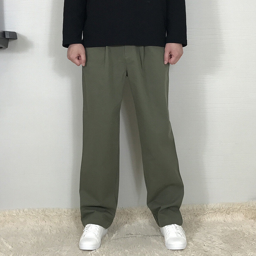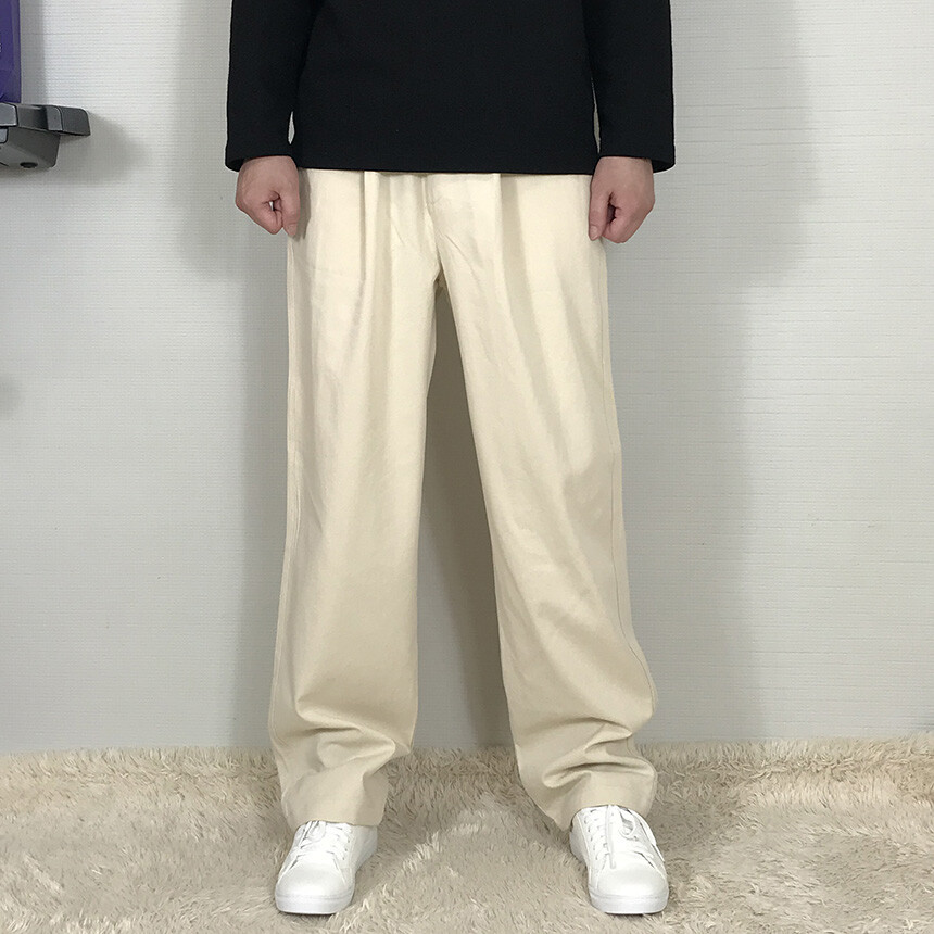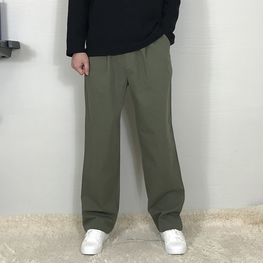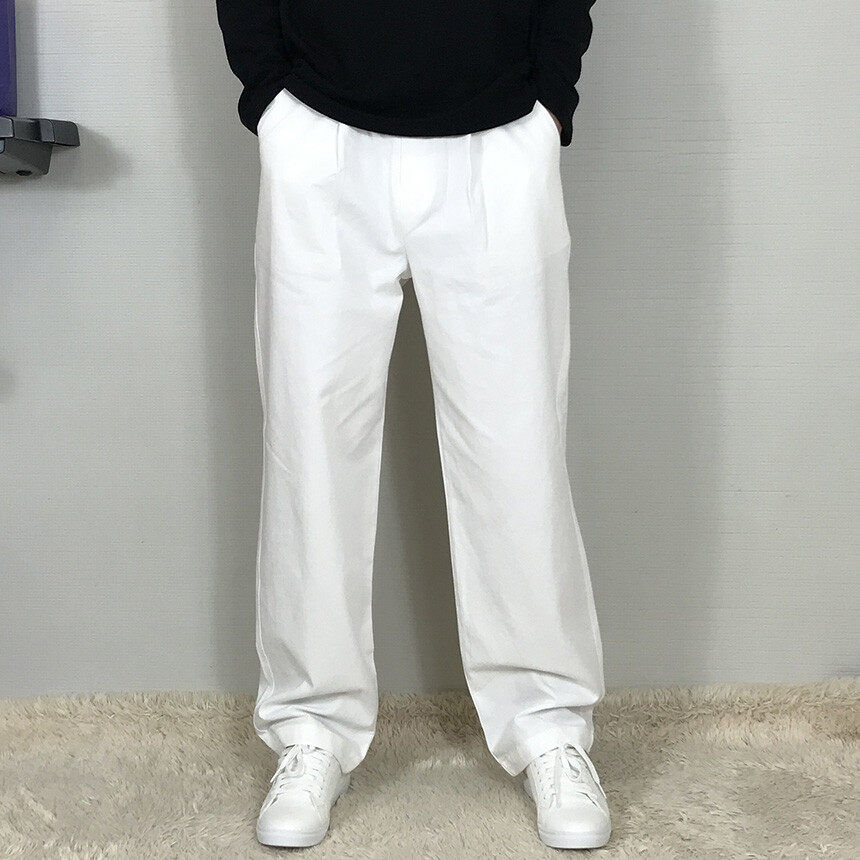 오버라인 원턱 와이드 반밴딩 면팬츠