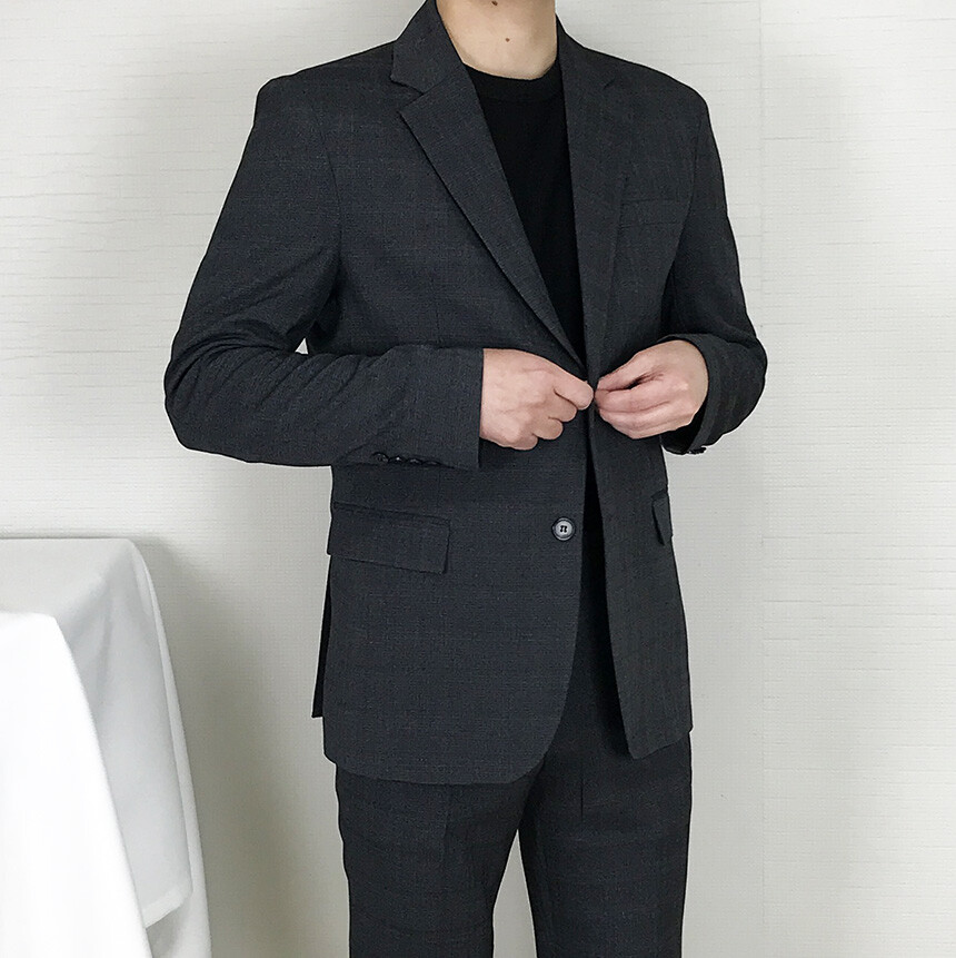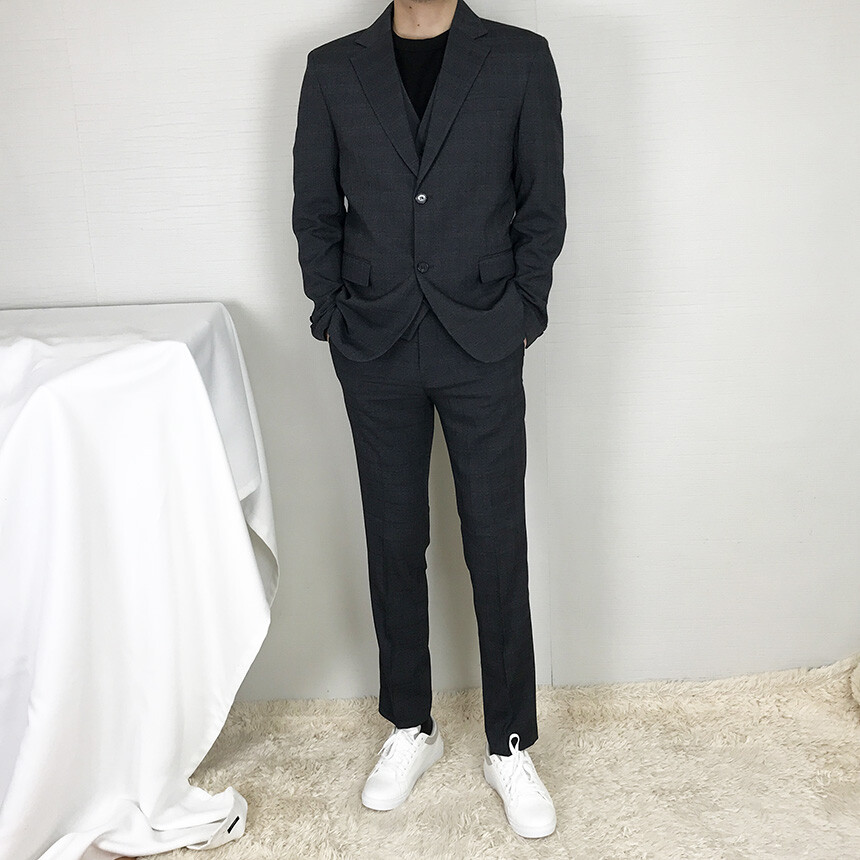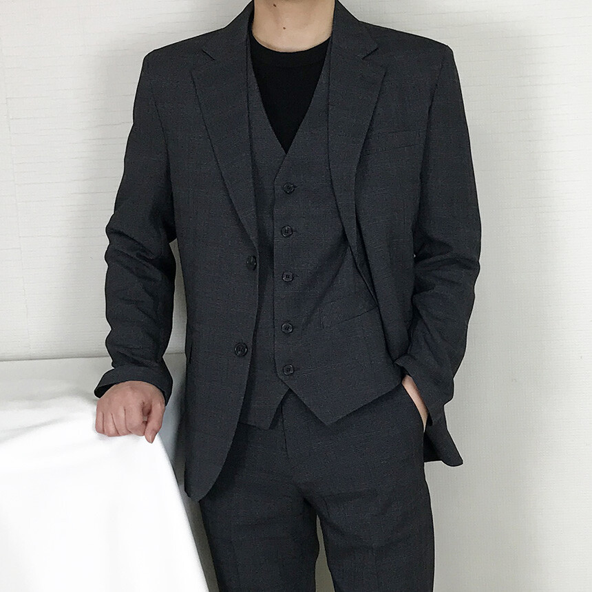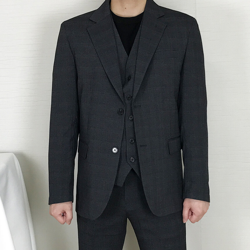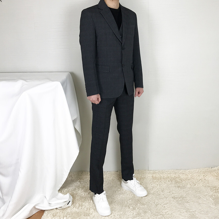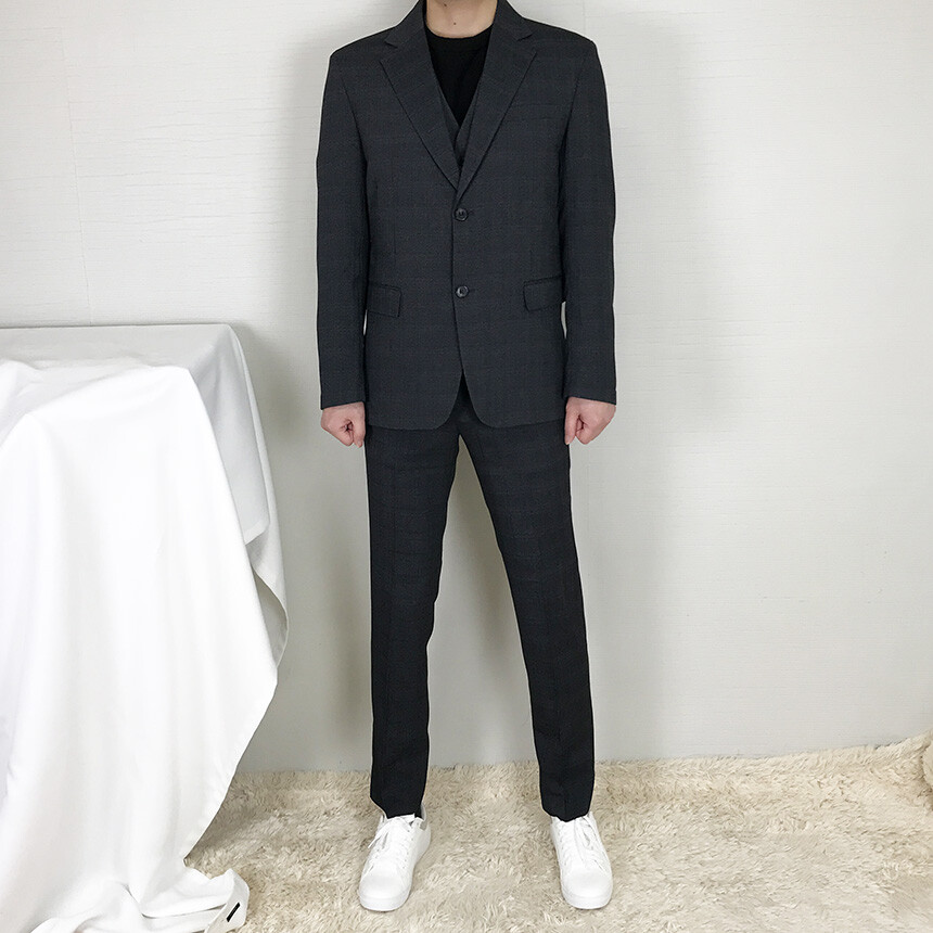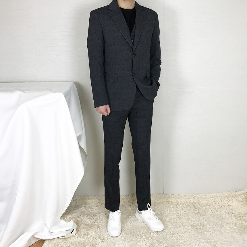 (spring) 슬림라인 연체크 블랙 쓰리피스수트 [FLDS1921]