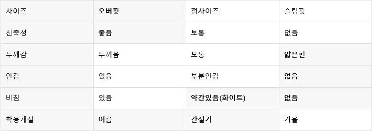 평소 입던 스타일과 달라 만족도가 낮을 수 있습니다