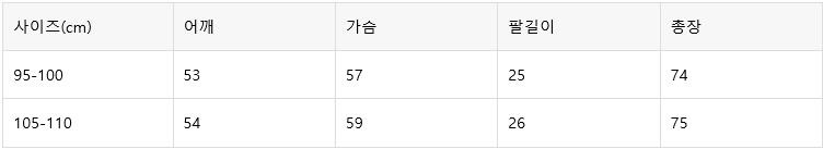 예시)본인사이즈100이면 100-105사이즈 구매 권장