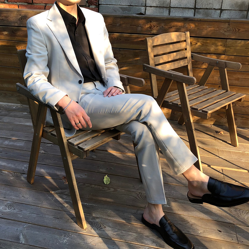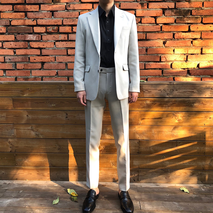 모델 코디는 스판기본슬림셔츠, 크림베이지모던셋업과 코디하였습니다.