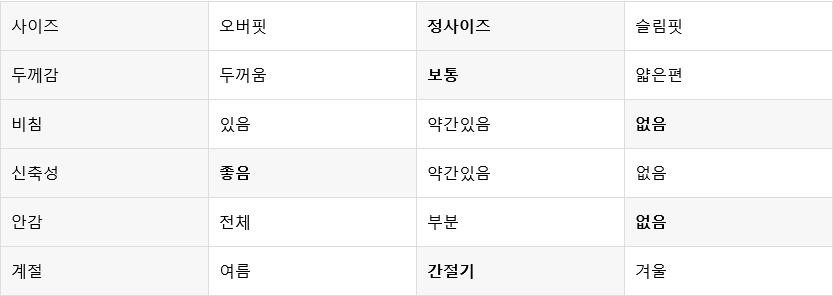 평소 입던 스타일과 달라 만족도가 낮을 수 있습니다