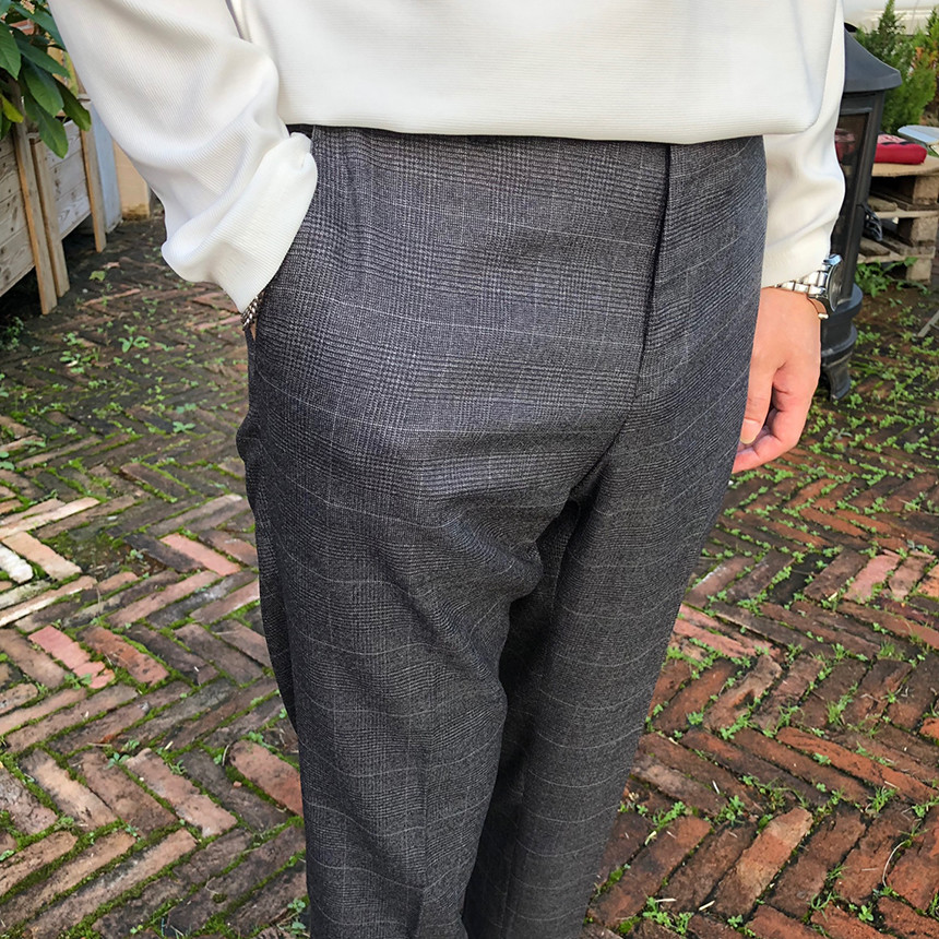 차콜그레이 색상과 체크무늬 디자인으로 제작되었습니다.
