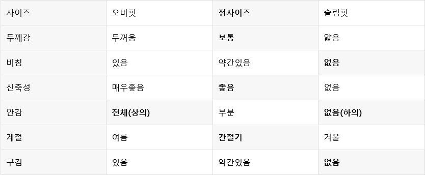 평소 입던 스타일과 달라 만족도가 낮을 수 있습니다