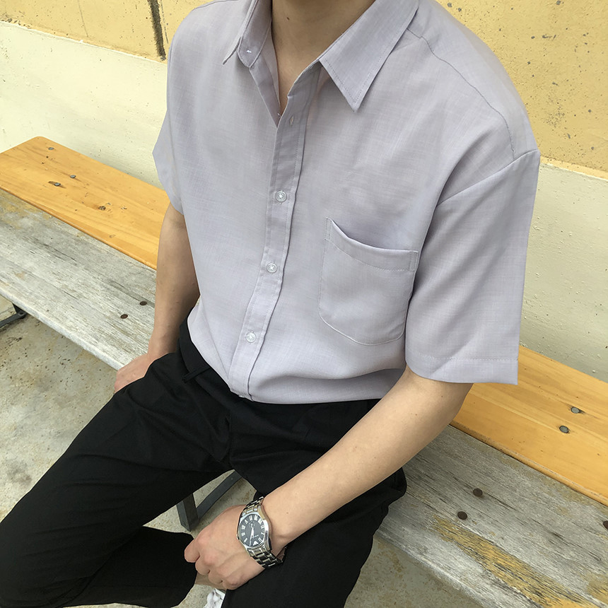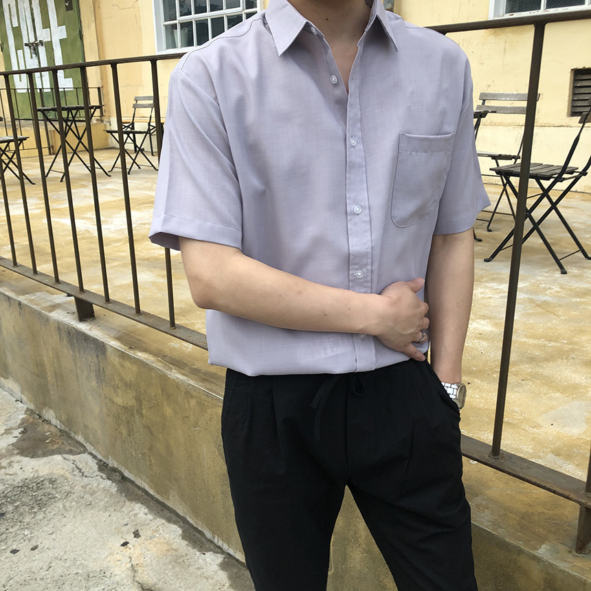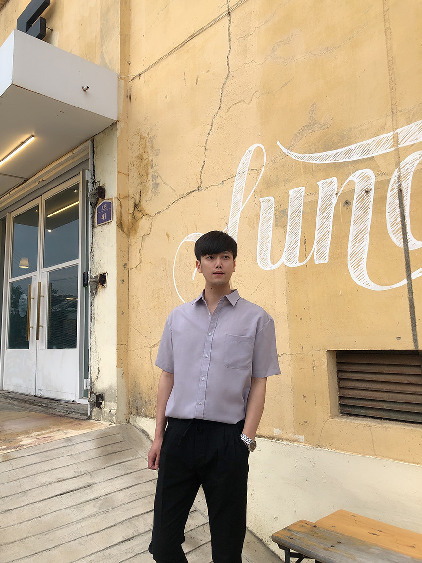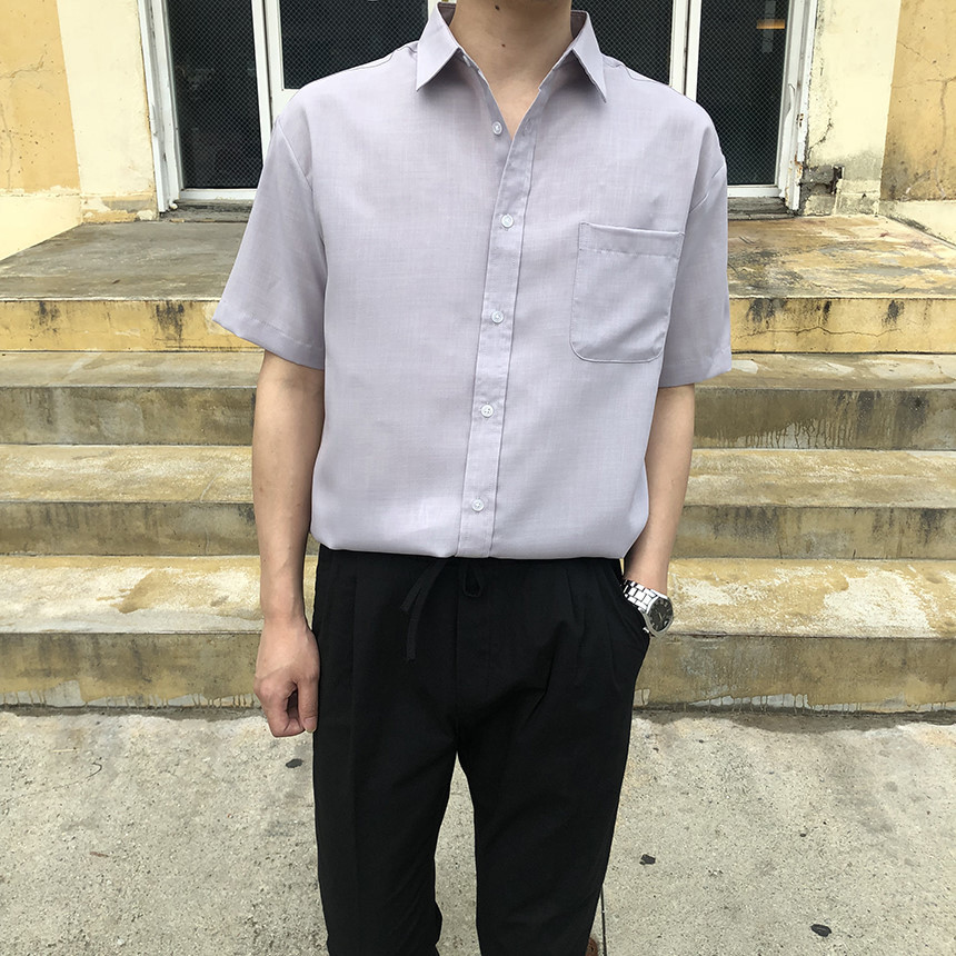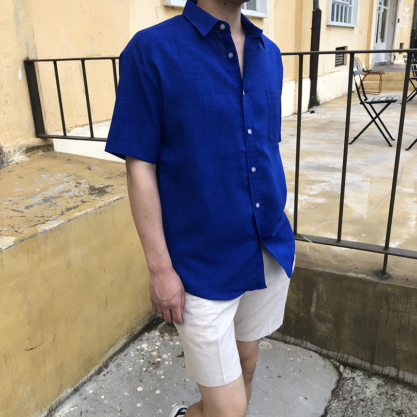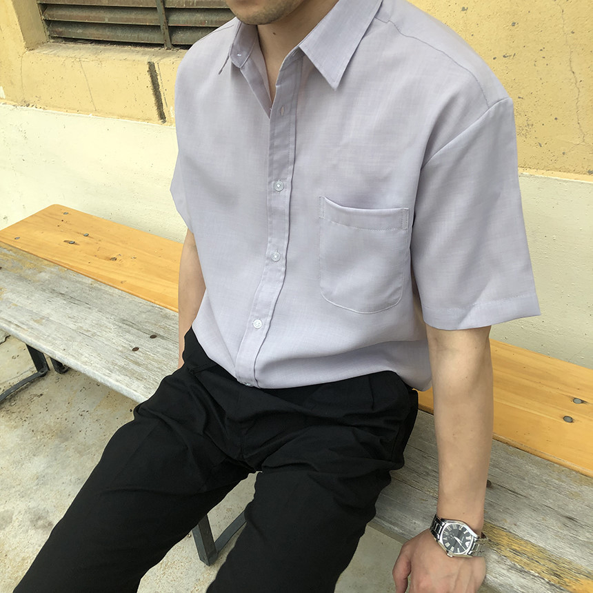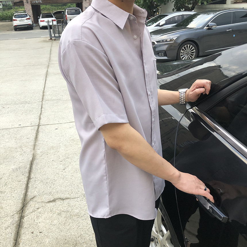 무지 스타일의 깔끔한 하늘하늘한 소재인 반팔남방 입니다.